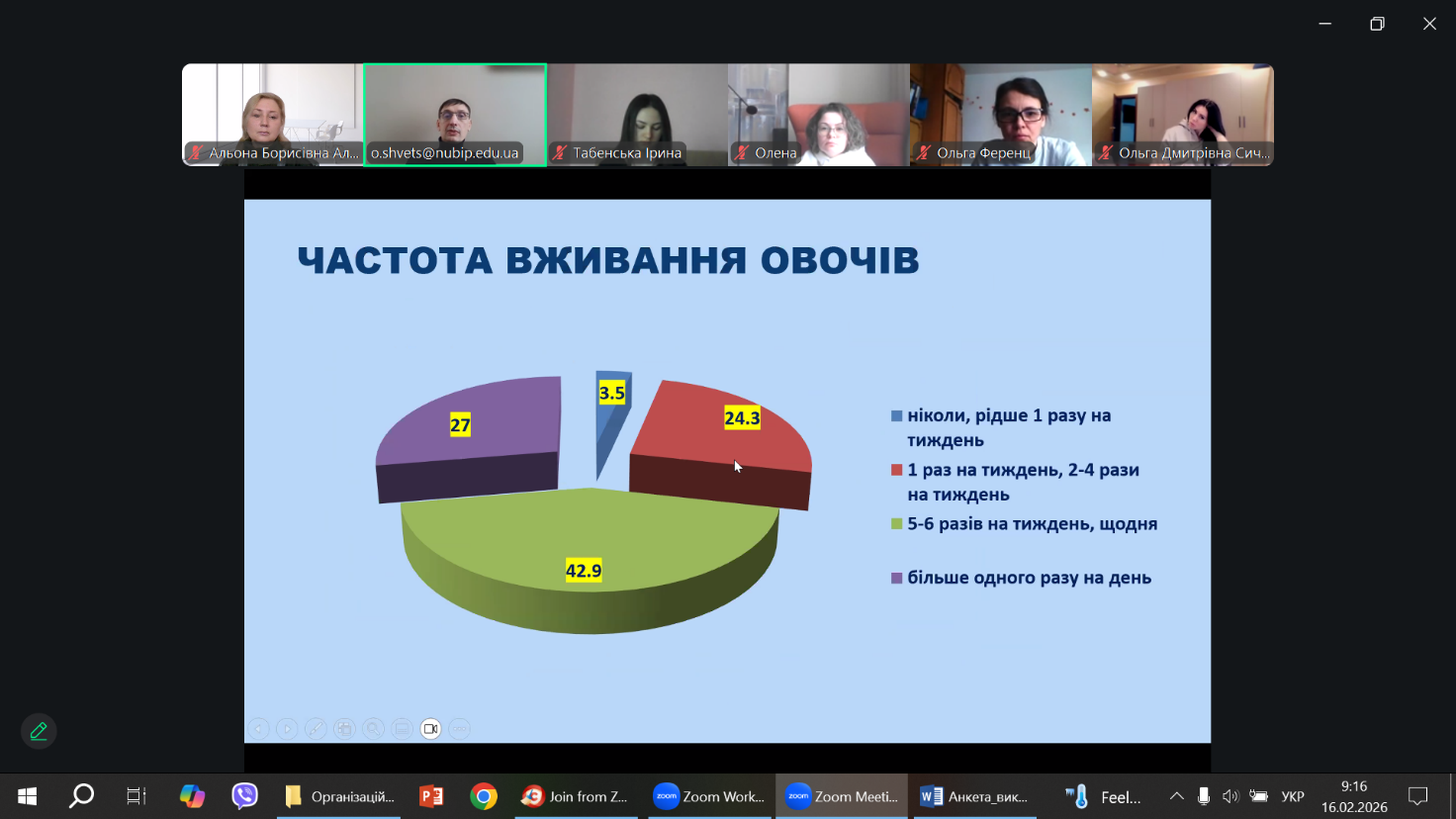 Важливим аспектом підготовки майбутніх фахівців до промоції здорового харчування дітей є вміння апелювати до доказової бази даних, інтерпретувати її, проводити самостійні соціологічні опитування; орієнтуватись у результатах опитувань, проведених в Україні та світі. Безперечним плюсом на користь наукового підходу до проведеного заняття є апелювання до результатів соціологічного дослідження в межах міжнародного проєкту «Здоров’я та поведінкові орієнтації учнівської молоді» / «Health Behaviour School-Aged Children» - HBSC, метою якого є отримання надійної та валідної інформації щодо характеристик здоров’я та способу життя учнівської молоді 10–17 років. Іншим аналізованим на занятті дослідницьким проєктом стало дослідження щодо поширеності надлишкової маси тіла та ожиріння в українських дітей раннього шкільного віку COSI-2024.