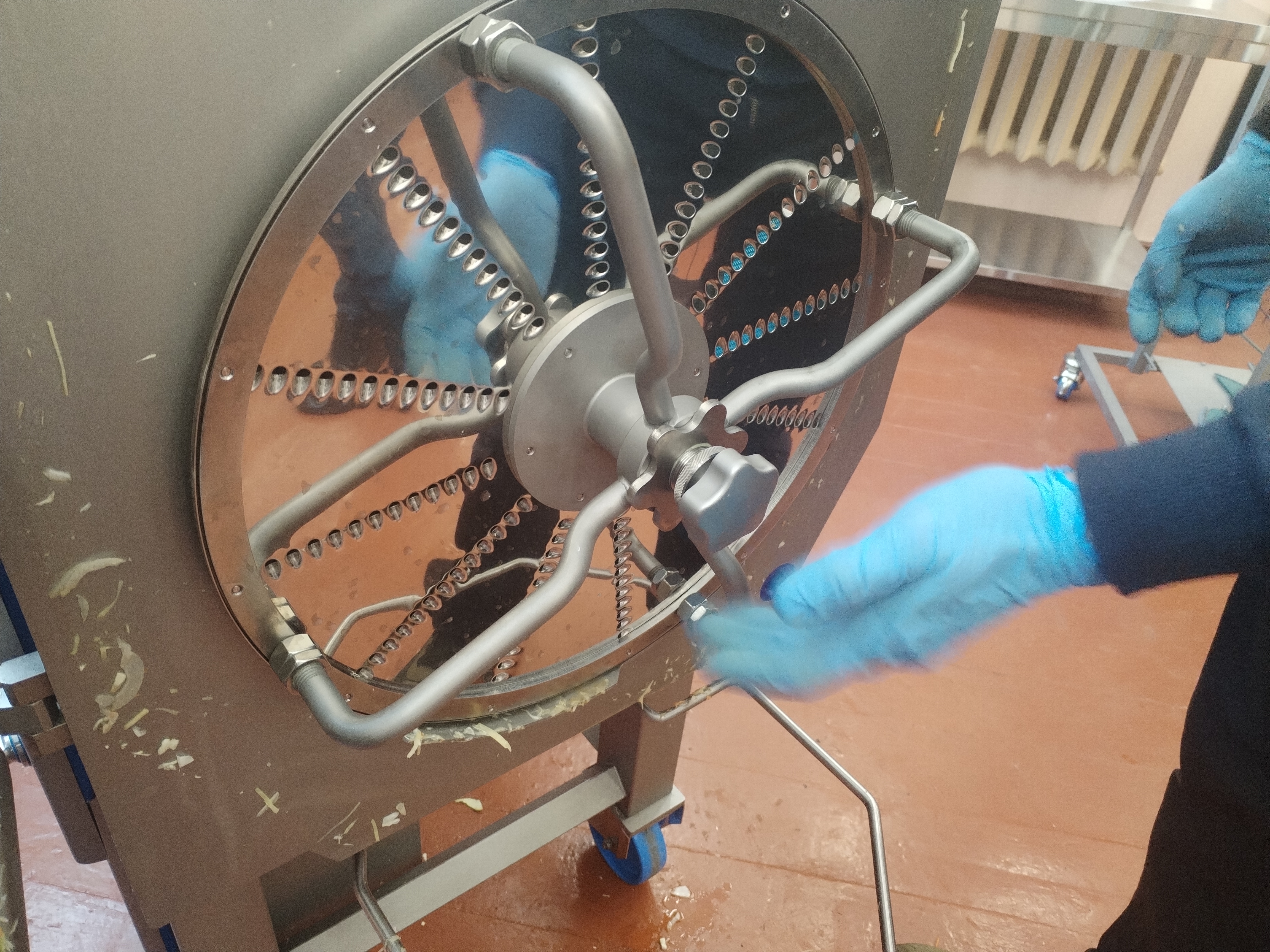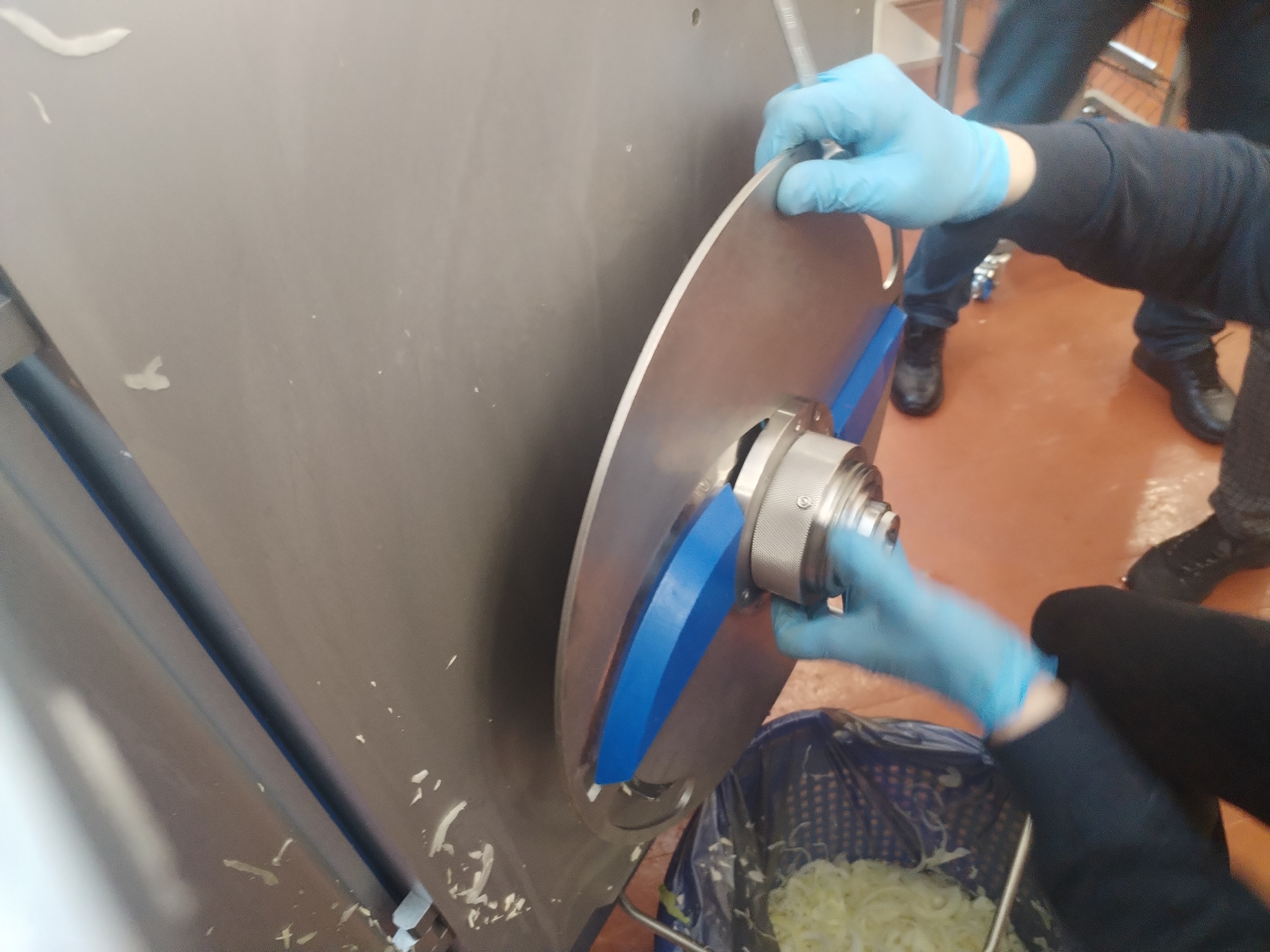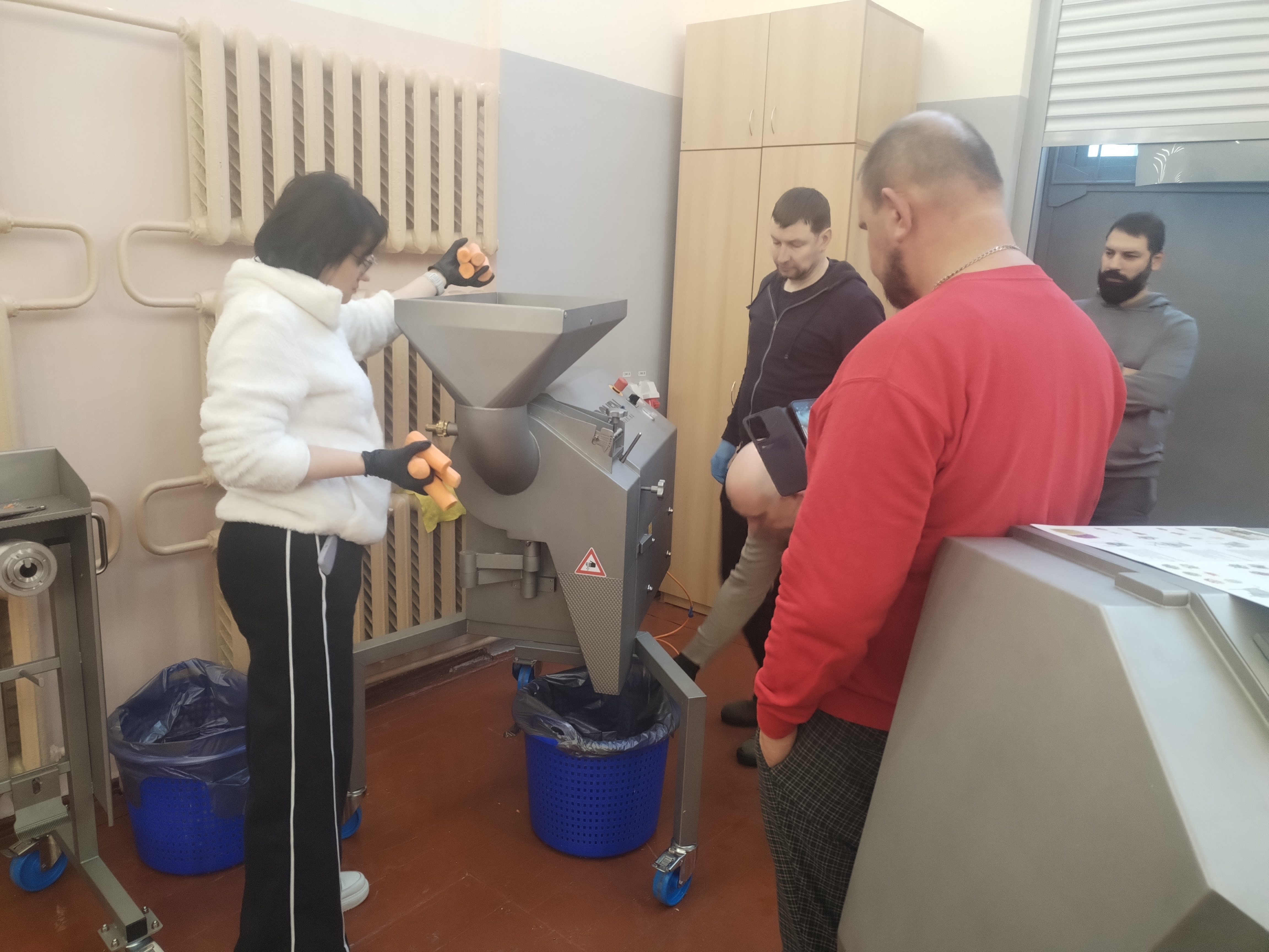 Також було детально розглянуто кінематичні схеми приводу робочих органів, конструкцію ножових блоків, принципи формування зусилля різання та вплив фізико-механічних властивостей сировини на енергоємність процесу подрібнення. Окрему увагу приділено питанням регулювання товщини та форми нарізання шляхом зміни типу різальних дисків, швидкості обертання робочих органів і режимів подачі продукту. Було наочно продемонстровано вплив конструкції ножів, кутів різання та характеру контакту «ніж–продукт» на якість зрізу, цілісність клітинної структури та зовнішній вигляд напівфабрикатів.
