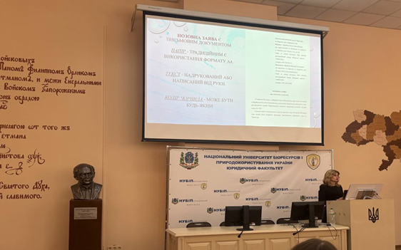 3 жовтня 2025 року на юридичному факультеті НУБіП України відбулася відкрита лекція к.ю.н. Світлани Авраменко з дисципліни «Правове письмо та документування» на тему: «Звернення громадян до суду: позовна заява в цивільному процесі та інші документи».