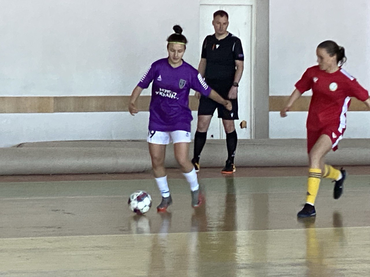 У кінці першого тайму футзалістки обох команд створили ще кілька небезпечних спроб атаки воріт суперниць. Іванна ЯКОВИШИНА (економічний факультет), після точної передачі Ірини МОКБЕЛЬ (підготовчі курси), виходила один на один з воротарем НУФВСУ та не змогла реалізувати цей момент. У відповідь, опонентки відзначились подвійною атакою Аделіни НАМАЗОВОЇ та Єлизавети АНАКІНОЇ, яку впевнено зупинила воротар нашої команди — Єлизавета ГОЛИК (підготовчі курси). Перший тайм закінчився з нічийним рахунком.
