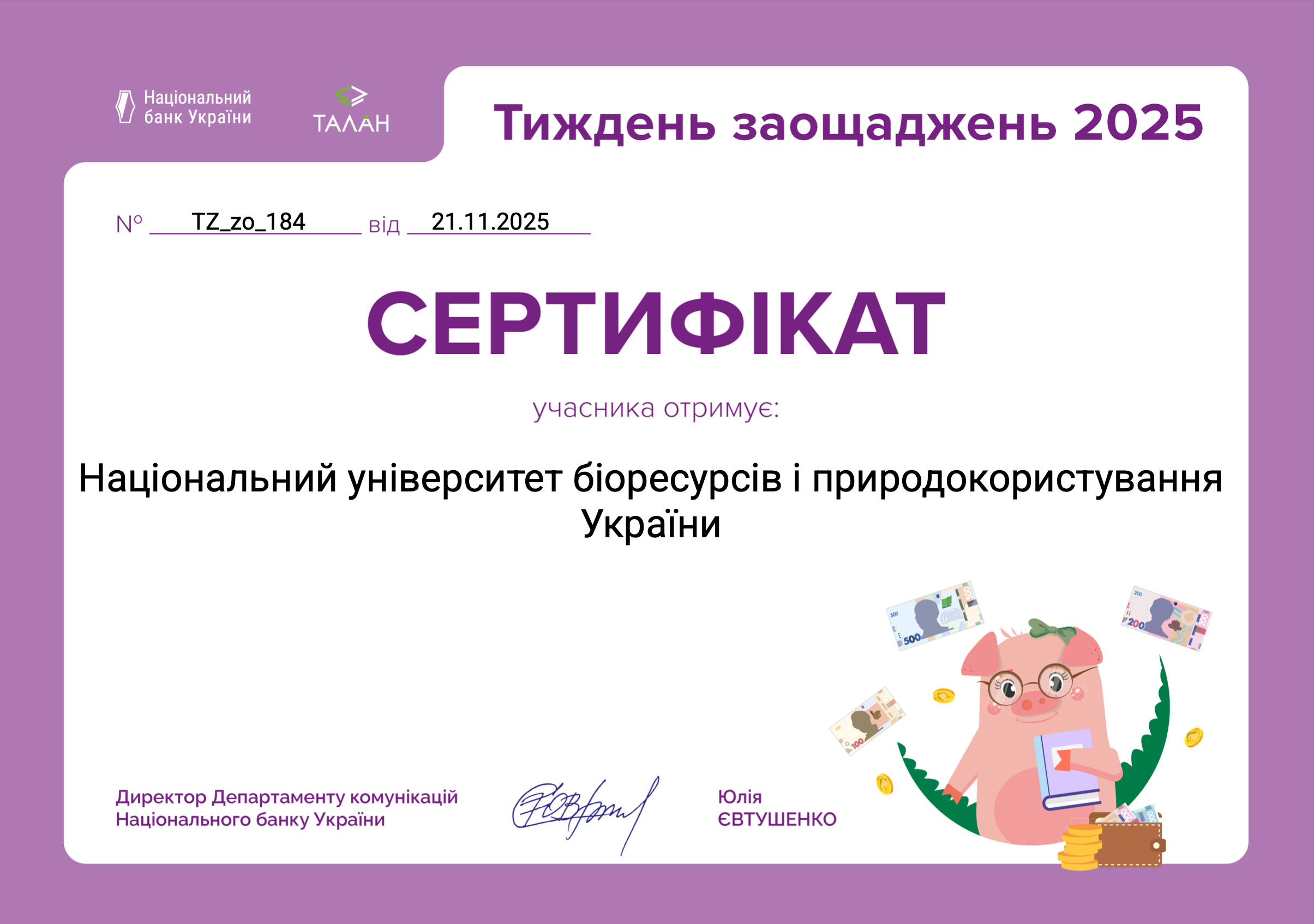 Також наш університет отримав сертифікат учасника Тижня Заощаджень 2025 року.