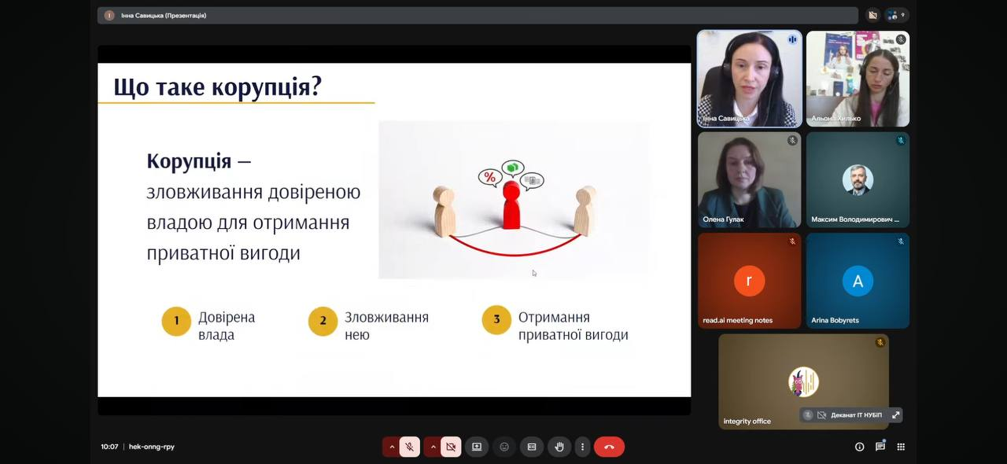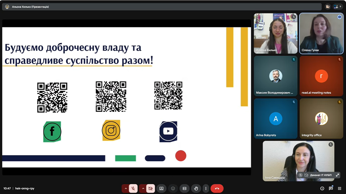 11 березня 2026 року відбулась онлайн зустріч на тему «Антикорупція у вишах: розпізнай, реагуй, впливай» для студентів 1 курсу бакалавратури і 1 року навчання магістратури та аспірантури факультету конструювання та дизайну Національного університету біоресурсів і природокористування України.