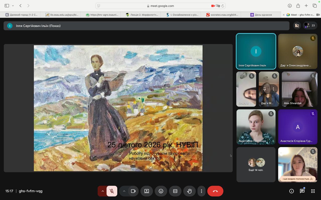 25 лютого науковий сектор Сенату студентської організації факультету захисту рослин, біотехнологій та екології провів онлайн-лекцію до дня народження Лесі Українки - видатної поетеси, драматургині та однієї з найсильніших постатей української культури.