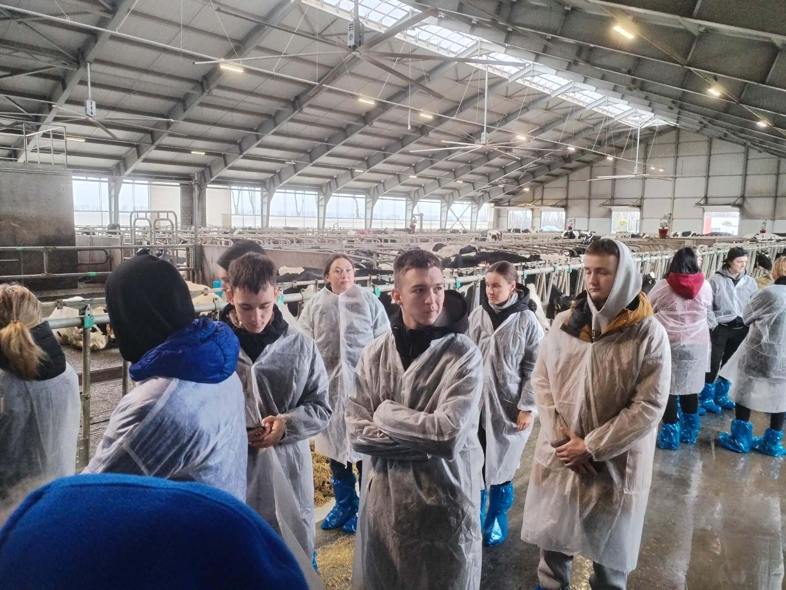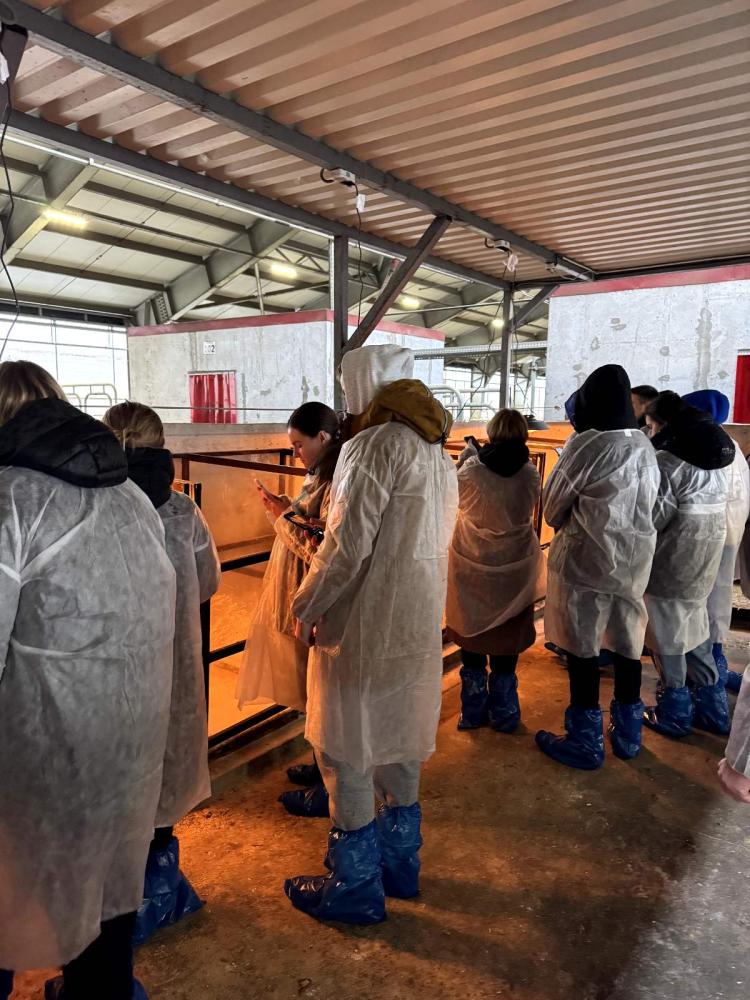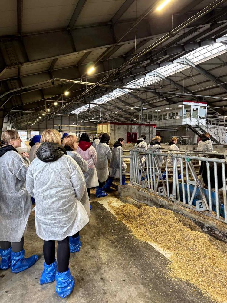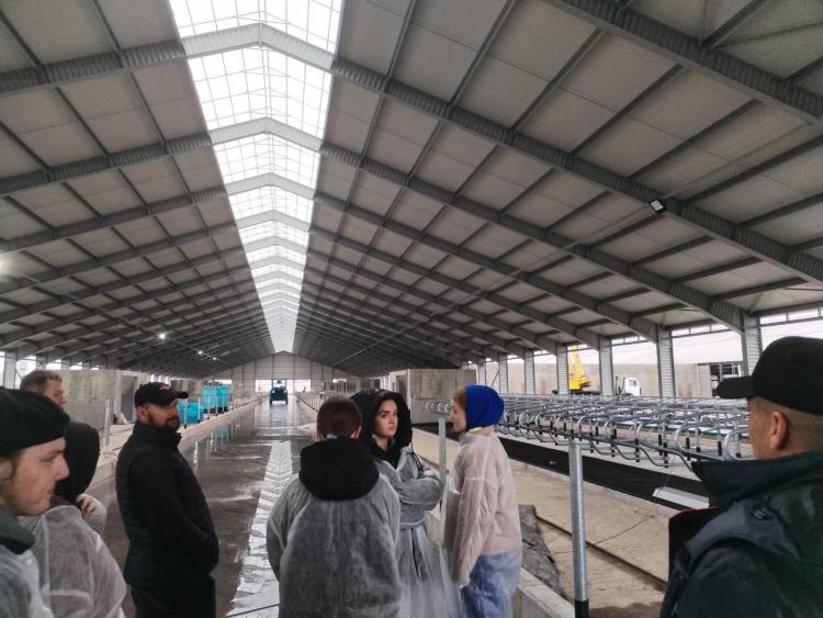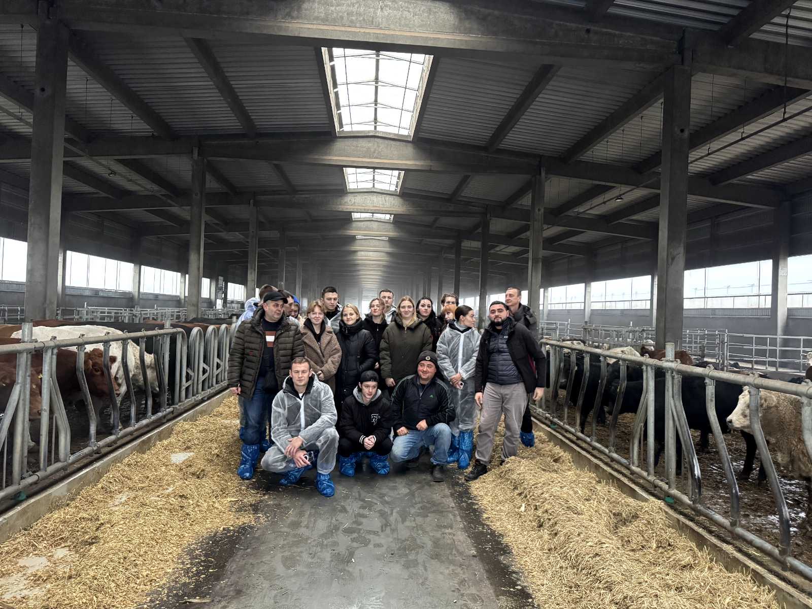 21 листопада 2025 р. здобувачі вищої освіти старших курсів факультету ветеринарної медицини відвідали приватне підприємство з розвинутим молочним та м’ясним скотарством. Поїздка стала можлива за ініціативи деканату факультету ветеринарної медицини. Супроводжували студентів в. о. завідувача кафедри ветеринарної репродуктології Сергій ДЕРКАЧ та доцент кафедри Валерій МАЗУР. Згідно з програмою візиту студенти познайомились з молочною фермою. Це надсучасне підприємство з виробництва молока з роботизованим доїнням корів.