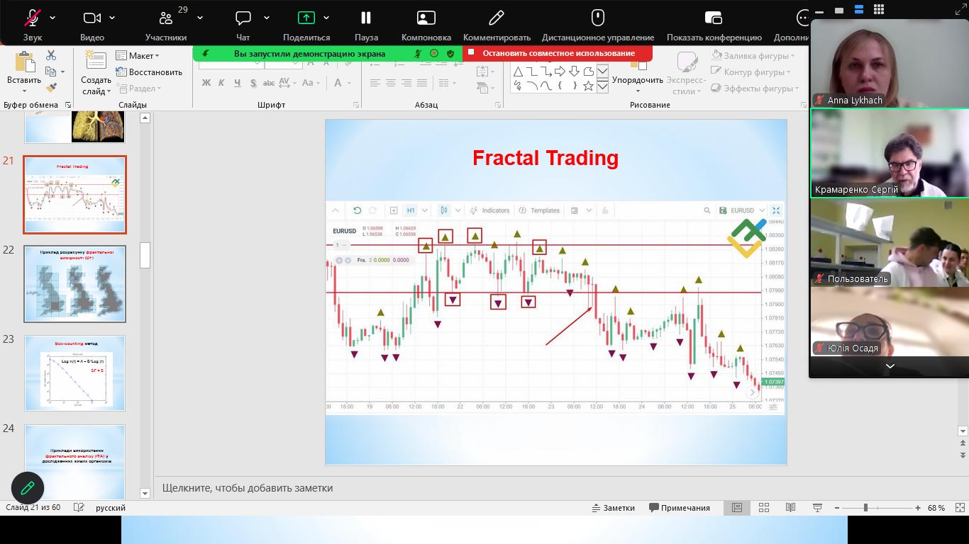 Підсумовуючи, варто зазначити, що фрактальний аналіз відкриває принципово нові можливості для дослідження складних біологічних систем у тваринництві. Його застосування дозволяє перейти від описового рівня аналізу до кількісної оцінки складності, варіабельності та адаптивності процесів, що відбуваються в організмі тварин і у виробничих системах. Це, у свою чергу, створює підґрунтя для підвищення ефективності виробництва, покращення якості продукції та забезпечення високих стандартів благополуччя тварин. Висловлюємо щиру подяку лектору, організаторам і всім учасникам за активну участь, цікаві дискусії та прагнення до розвитку. Переконані, що отримані знання стануть основою для подальших наукових досліджень і практичних впроваджень у галузі тваринництва України.