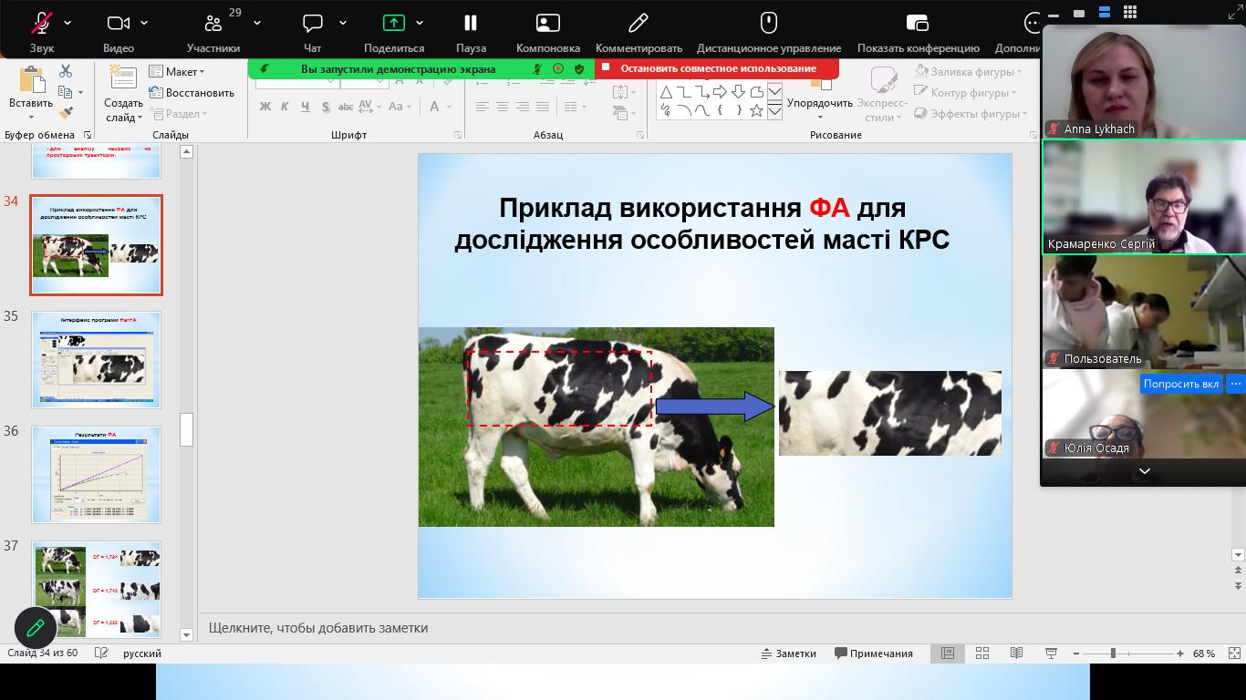Учасники вебінарів також ознайомилися з можливостями використання фрактального аналізу для дослідження просторових траєкторій руху тварин, що дозволяє оцінювати ефективність використання ресурсів, особливості кормової поведінки та вплив умов утримання. Важливо, що такі підходи дають змогу інтегрувати математичне моделювання з етологічними спостереженнями, формуючи новий рівень аналізу даних у тваринництві.
