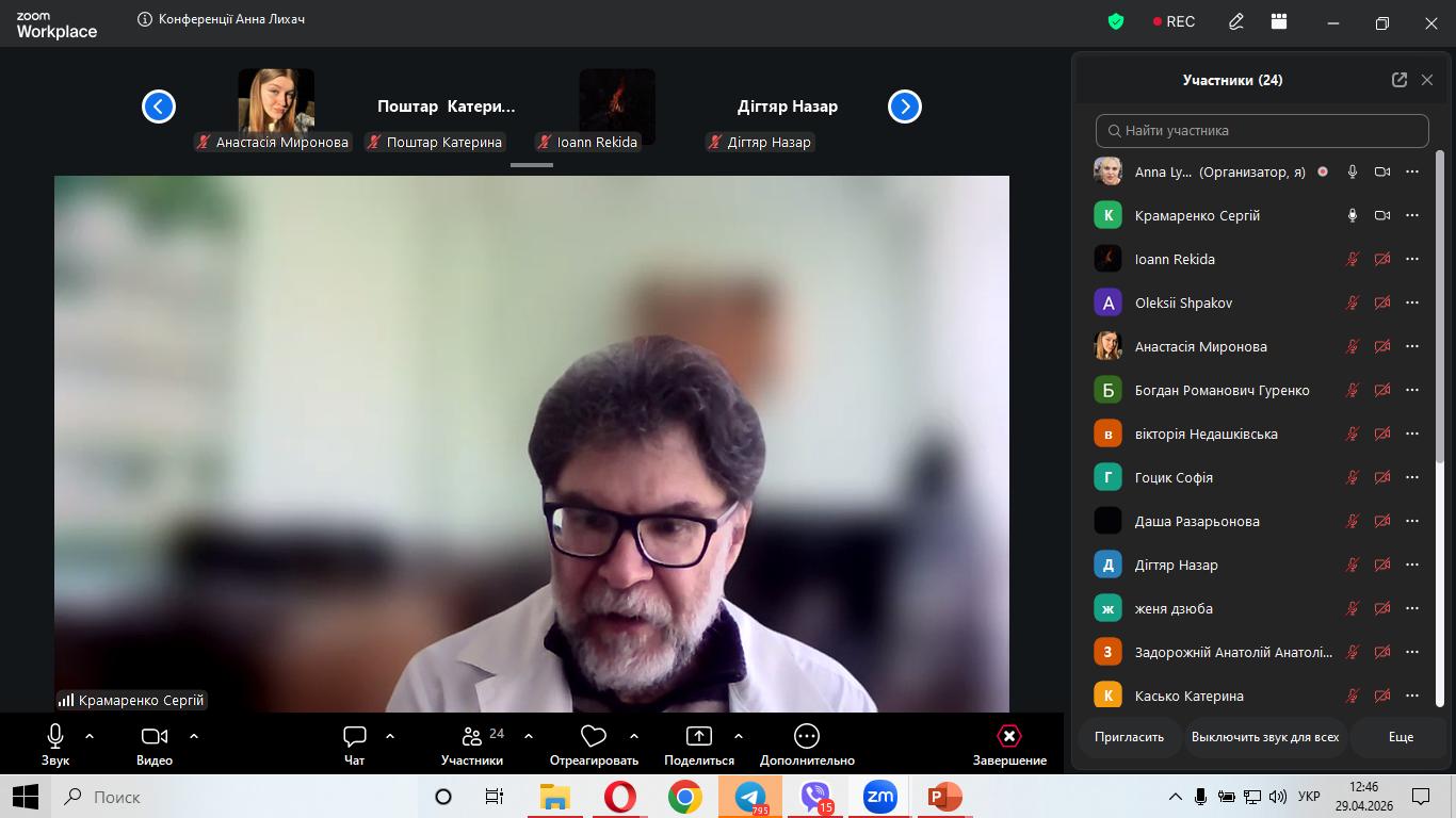 У ході гостьових лекцій було детально розглянуто сучасні методи фрактального аналізу, зокрема метод box-counting, мультифрактальний аналіз та ентропійні підходи до оцінки фрактальної розмірності. Учасники отримали цілісне уявлення про те, як ці інструменти можуть застосовуватися для аналізу як статичних, так і динамічних характеристик біологічних систем. Йшлося не лише про теоретичні аспекти, а й про конкретні приклади практичного використання - від дослідження структури геному та гістологічних препаратів до оцінки якості продукції тваринництва, включаючи м’ясо та молоко.