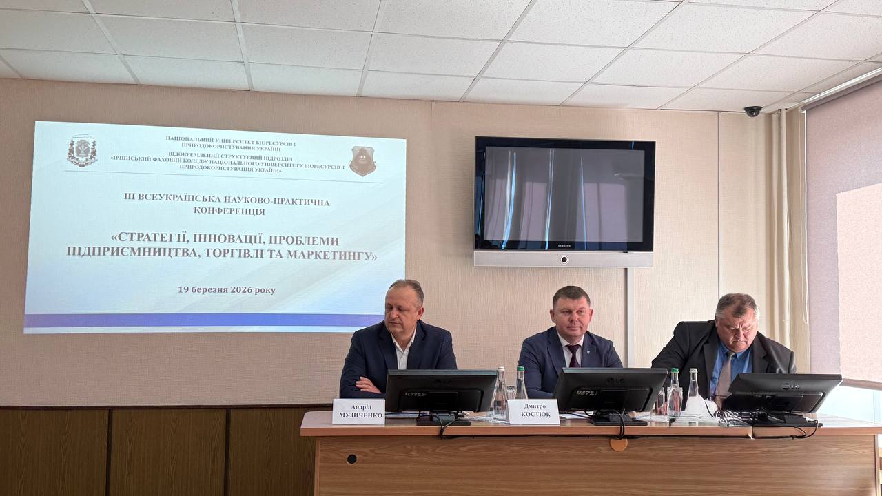 19 березня 2026 року в Ірпінському фаховому коледжі НУБіП України відбулася ІІІ Всеукраїнська науково-практична конференція «Стратегії, інновації, проблеми підприємництва, торгівлі та маркетингу», яка об’єднала представників закладів освіти, наукової спільноти, бізнесу та здобувачів освіти навколо актуальних питань сучасного економічного розвитку, маркетингу, підприємництва та торгівлі.