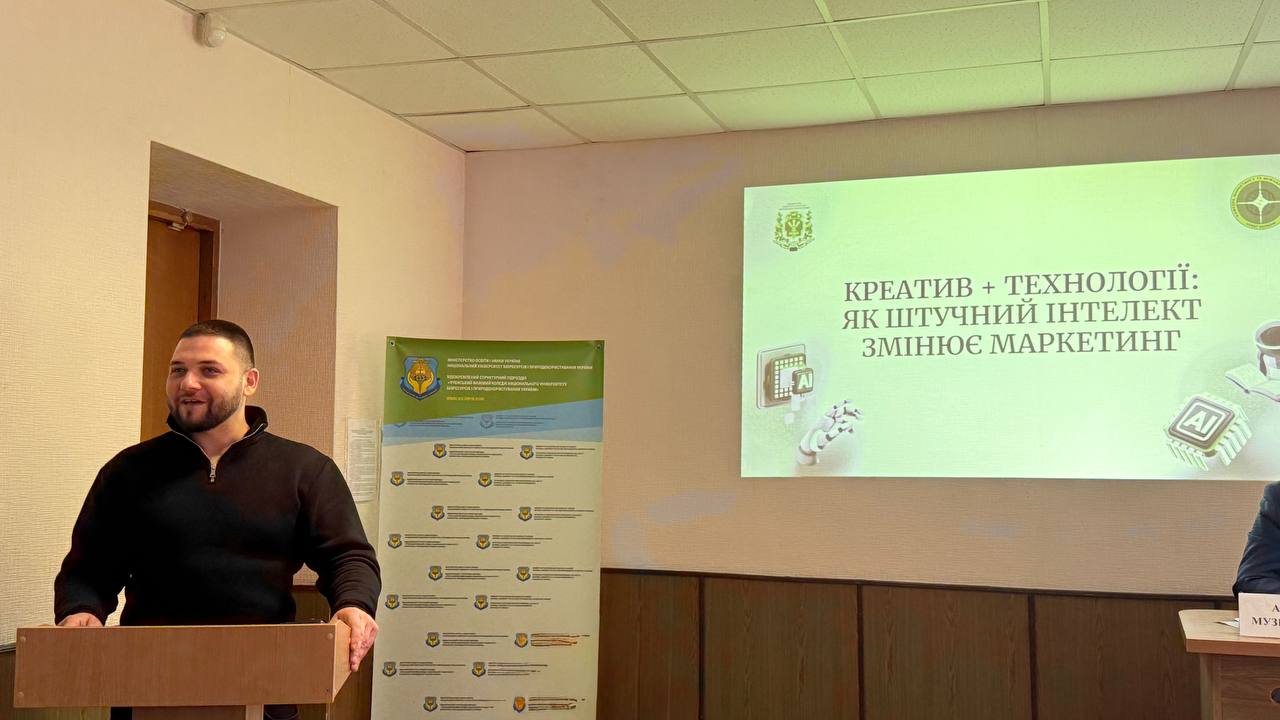 Кафедру маркетингу та міжнародної торгівлі НУБіП України на конференції представив асистент кафедри, доктор філософії Олександр Омельяненко. У межах свого виступу він презентував доповідь, присвячену поєднанню креативу та технологій у сучасному маркетингу, зокрема продемонстрував, як інструменти штучного інтелекту трансформують підходи до створення контенту, аналізу споживачів та побудови ефективних маркетингових комунікацій.