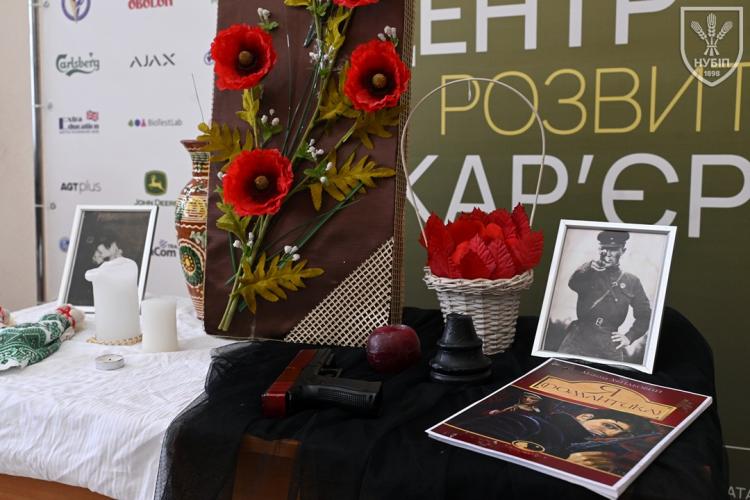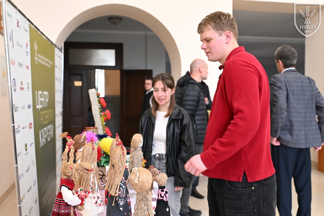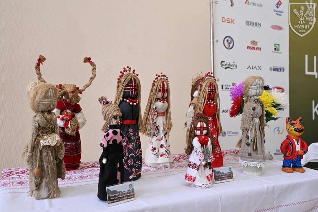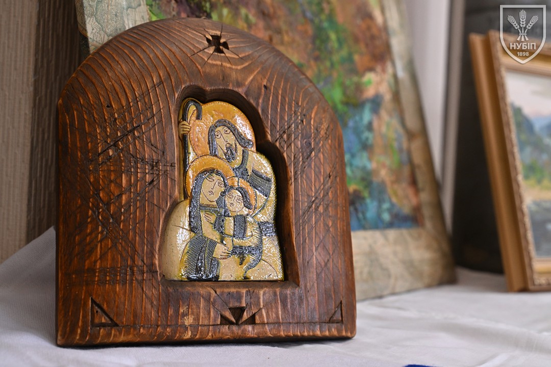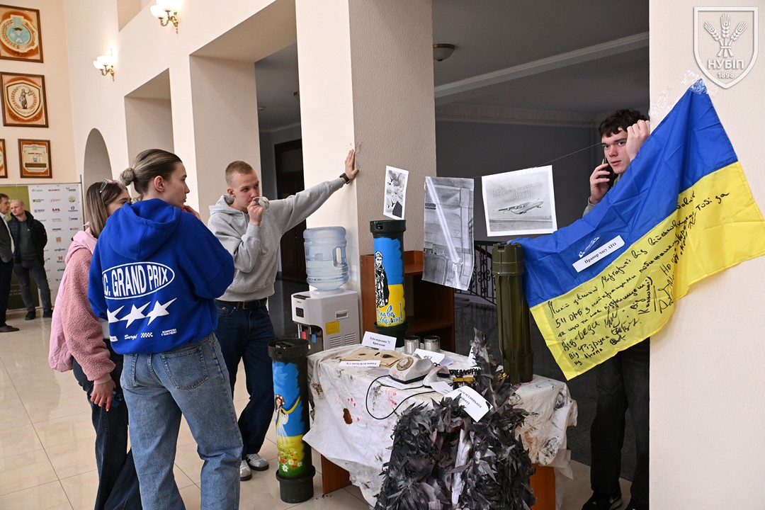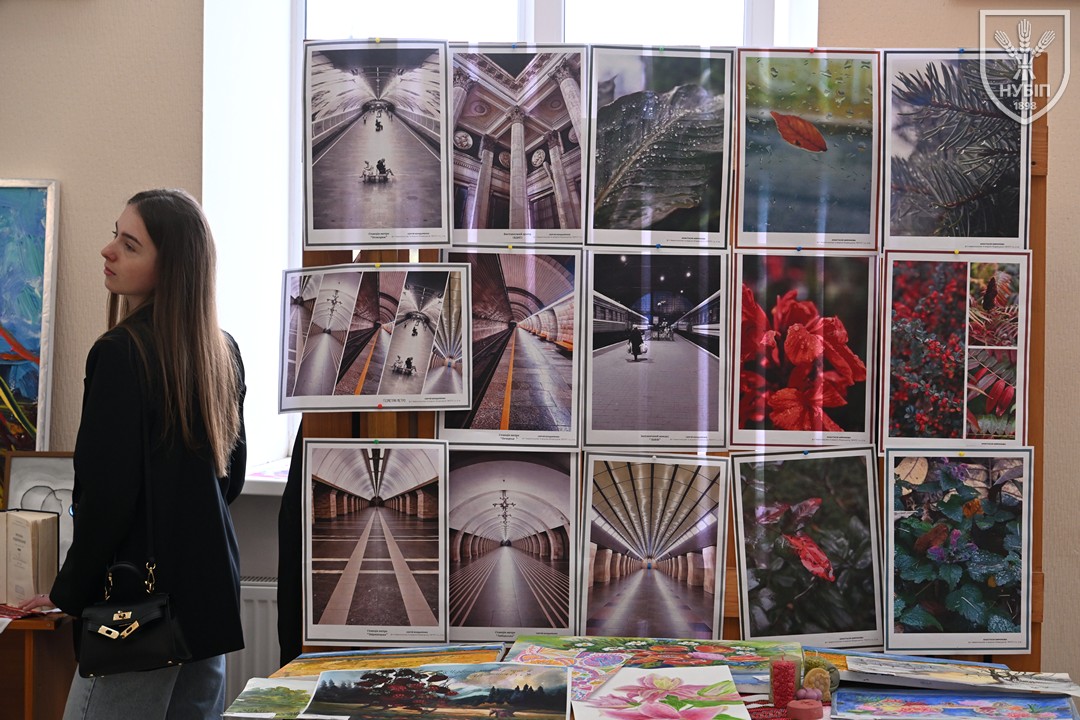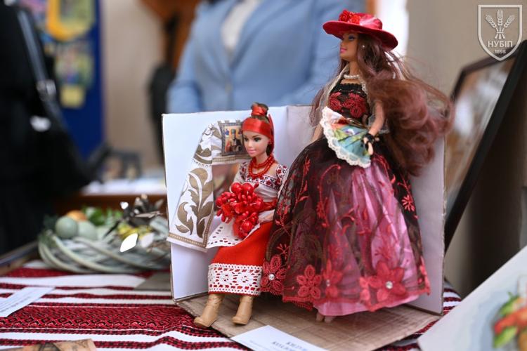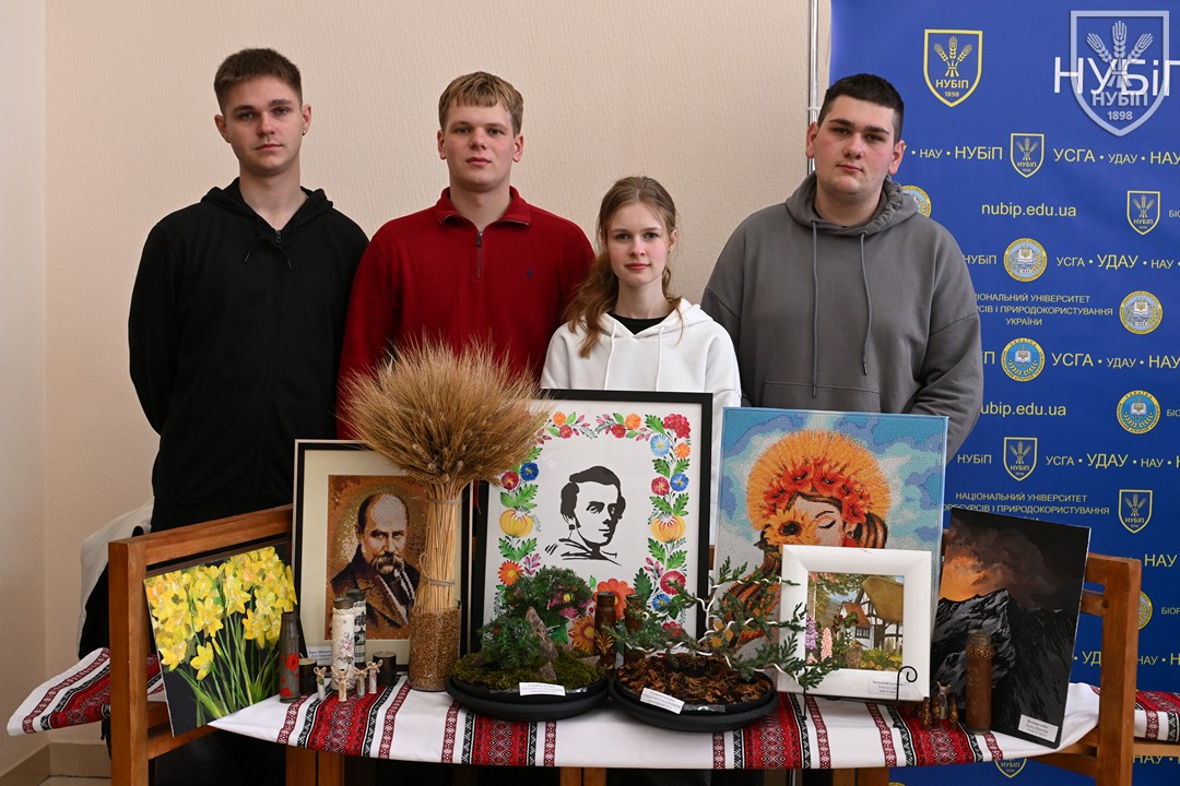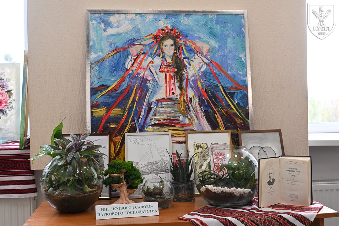 До початку перегляду конкурсних програм на сцені, які цьогоріч проходять під гаслом «Натхненні класикою — загартовані війною», Гербова зала університету стала місцем виставки творчих робіт студентів та викладачів університету у царині образотворчого, декоративно-вжиткового мистецтва (фотографії, живопису, графіки, декоративного розпису, оригамі, квілінгу, аплікації, колажу, вишивки, лозоплетіння і т.ін). Вражало розмаїття технік, стилів, форм, палітри того, що можна було побачити, але ж і представлення експозицій було надзвичайно колоритним, що відразу відзначили членкині образотворчого журі Олеся ВАРКАЧ (художник-графік, ілюстратор книг, членкиня Національної спілки художників України), Галина ЗАБАШТА (доценка кафедри мистецтва текстилю, вишивки та костюма Київської державної академії декоративно-прикладного мистецтва і дизайну імені Михайла Бойчука, членкиня Національної спілки художників України, лавреатка премії імені Катерини Білокур, заслужений діяч мистецтв України), Наталя ДЯЧЕНКО-ЗАБАШТА (старший викладач кафедри мистецтва текстилю, вишивки та костюма, спеціалізації «Арткостюм» Київської державної академії декоративно-прикладного мистецтва і дизайну імені Михайла Бойчука, членкиня Національної спілки художників України). «Приведемо сюди своїх студентів, — казали мисткині, — нехай подивляться, що таке справжній, а не формальний дух української творчості!»