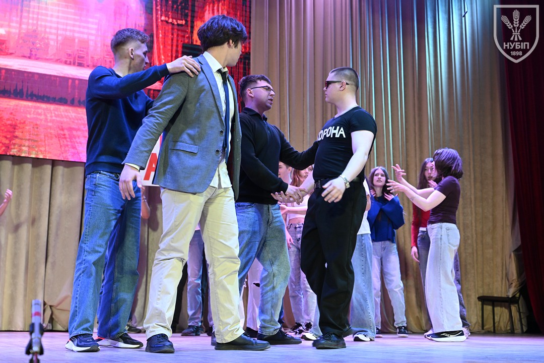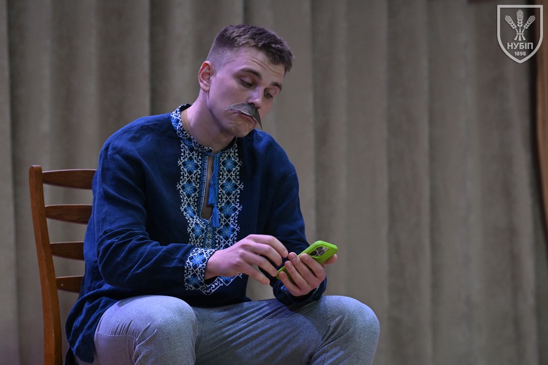 Другими на сцену вийшли майбутні ветеринари. Тут глядачів відразу чекало відкриття (можливо, так і буде, є ж така номінація для переможців фестивалю!): роль Марка КРОПИВНИЦЬКОГО зіграв заступник декана факультету ветеринарної медицини, доцент Роман ДИМКО. Роман Олександрович ще й став солістом у фінальній пісні «Кохання»! Під таким керівництвом театральна постановка на тему комедії «Пошилися в дурні» виглядала яскраво, експресивно, дотепно. Особливо запалив третьокурсник Іван КОВТУН, який і номери ставив, і в роль вжився, і в танці соло виконав професійно.