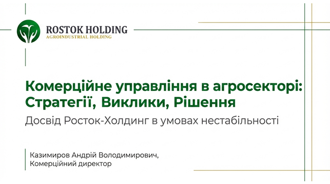 Спікер акцентував увагу на алгоритмах закупівель необхідних груп ТМЦ для посівної, плануванні продажів та процесі реалізації готової продукції рослинництва.