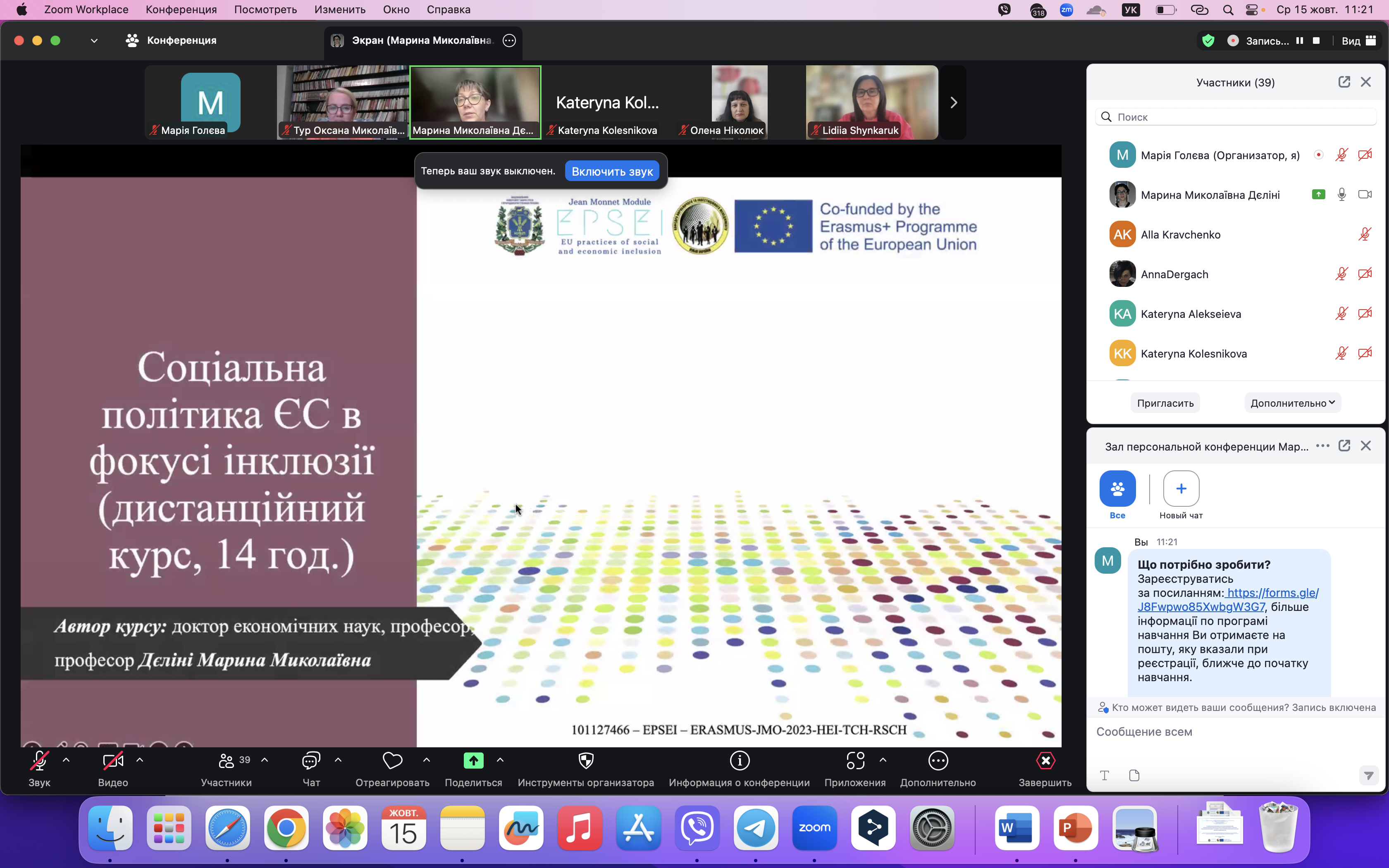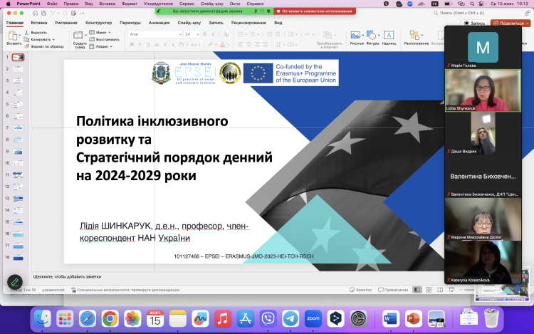 Свого продовження серія освітніх заходів отримала у форматі презентації дистанційного навчального курсу «Соціальна політика ЄС у фокусі інклюзії», розробленого та представленого д.е.н., професором Мариною ДЄЛІНІ.