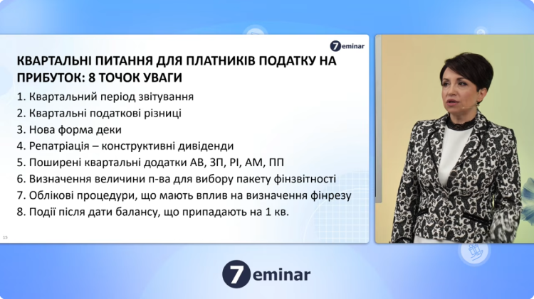 Програма семінару була насиченою і охопила широкий спектр питань, що безпосередньо впливають на діяльність підприємств і роботу фахівців обліково-фінансової сфери. Особливу увагу було приділено податковим змінам для юридичних осіб, зокрема питанням податку на прибуток, новим формам звітності, проблематиці непідтвердженої первинної документації та типових помилок після звітування.