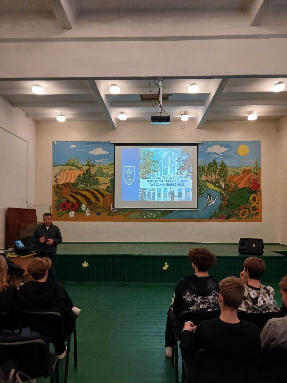 Учні отримали можливість дізнатися про особливості здобуття аграрної освіти та перспективи професійної реалізації. В ході дискусії, що розгорнулася після виступу, вияснили що декілька старшокласників розглядають університет для подальшого навчання. У ході зустрічі Іван Миколайович розкрив учням значення сучасної підготовки фахівців у галузі тваринництва та водних біоресурсів, наголошуючи на тому, що цей напрям є стратегічно важливим для забезпечення продовольчої безпеки країни. Він окреслив зміст освітніх програм факультету тваринництва та водних біоресурсів, розповів про особливості навчального процесу, можливості для студентів, закордонні стажування і цікаве студентське життя.