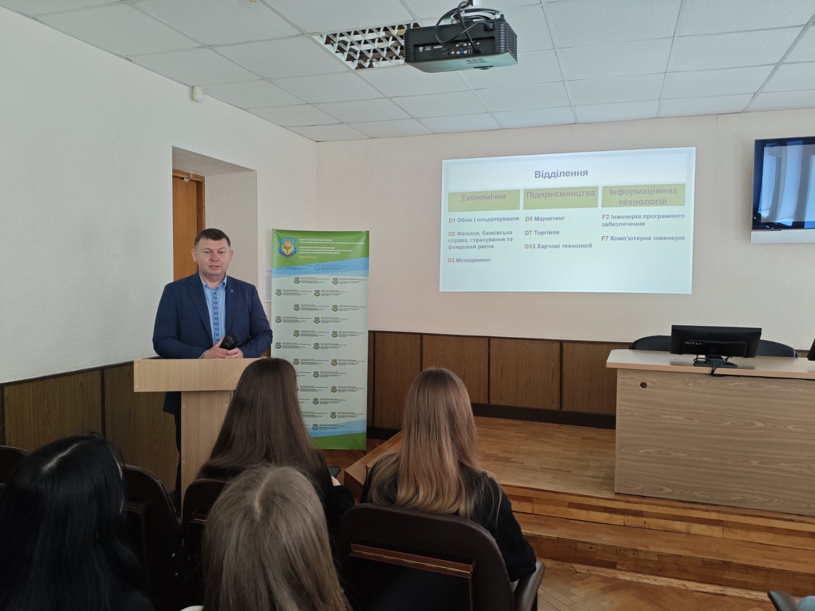 Гостей привітав директор коледжу Дмитро КОСТЮК, який розповів про освітні можливості закладу, його досягнення та перспективи для майбутніх абітурієнтів.