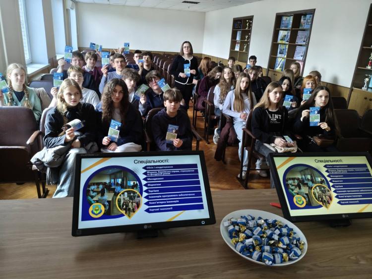 На завершення зустрічі відповідальний секретар приймальної комісії Наталія ДУБАС ознайомила школярів з особливостями вступної кампанії 2026 року та пригостила гостей смачними цукерками з передбаченням.