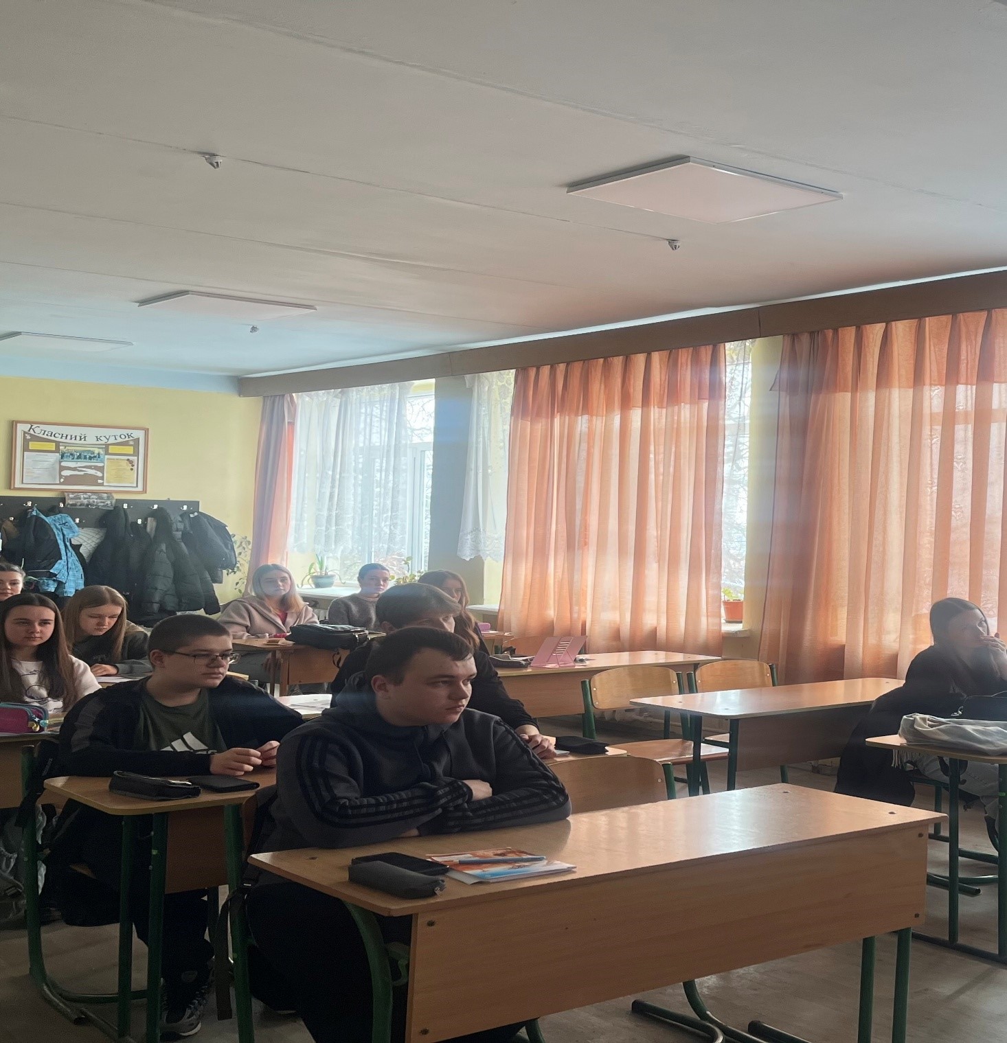 Обговорили також комфортні умови проживання в гуртожитках, зручне розташування гуртожитків та навчальних корпусів у студмістечку, а також можливості для всебічного розвитку студентами під час навчання у столиці країни. Викладач розповіла учням про те, що в університеті створено сприятливі умови для наукового, культурного та спортивного розвитку студентів: численні наукові гуртки, гуртки художньої самодіяльності, спортивні секції.