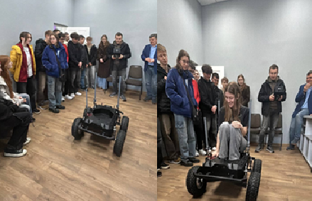 У навчальній лабораторії програмування роботів усі охочі навіть змогли покататися на роботизованій машині, що викликало неабияке захоплення.