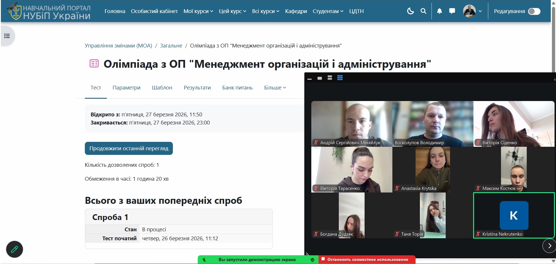 У період з 24 по 27 березня науково-педагогічними працівниками кафедри менеджменту ім. проф. Й. С. Завадського було проведено І етап Всеукраїнської студентської олімпіади з дисциплін «Управління персоналом», «Менеджмент», «Стратегічне управління» та ОПП «Менеджмент організацій і адміністрування» серед здобувачів вищої освіти.