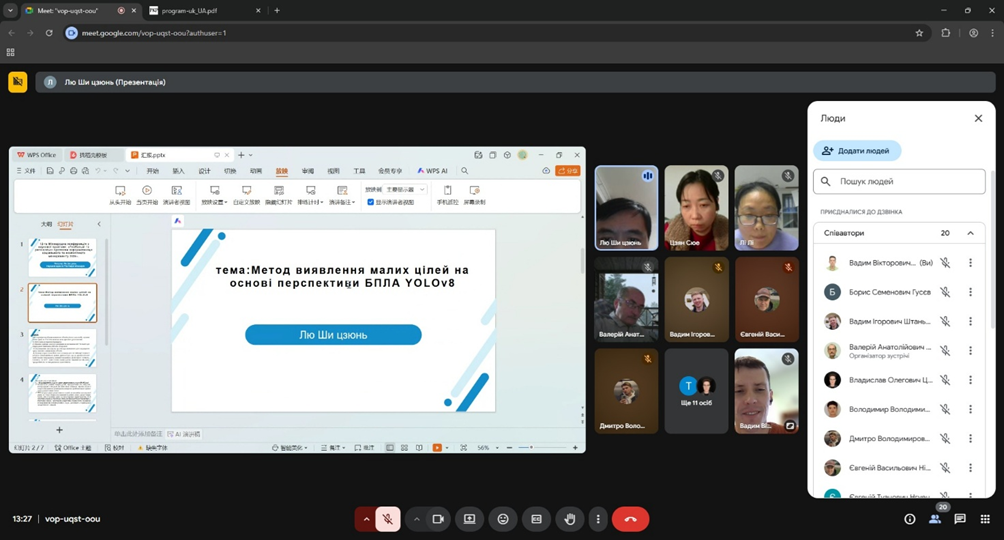 Ще одна цікава доповідь – «Small Target Detection Method Based on YOLOv8s UAV Perspective», яку представили Лю Ши цзюнь та Вадим Вікторович Шкарупило.