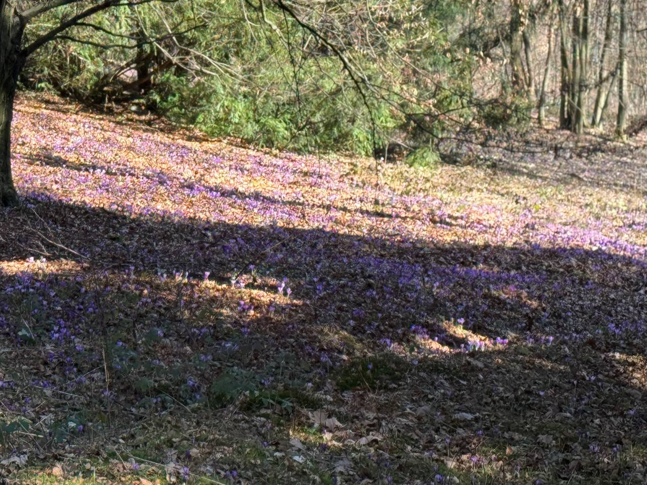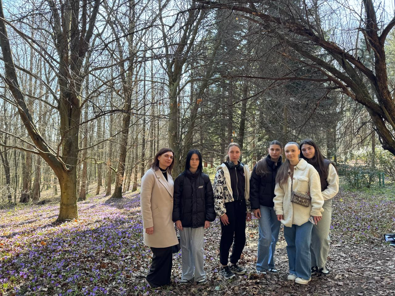 Особливе захоплення у здобувачів освіти нашого коледжу викликали весняні галявини, вкриті ніжними фіолетовими квітами — шафранами. У цей час парк перетворюється на справжній природний килим із тисяч квітів.