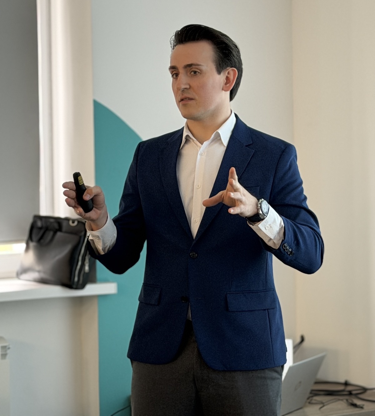 Про стратегічні пріоритети університету розповів начальник відділу міжнародних зв’язків Максим КЛИМЕНКО, який детально зупинився на реалізації стратегії інтернаціоналізації, інтеграції у світовий науковий простір та підтримці міжнародних освітніх програм, що дозволяють студентам формувати власну траєкторію без обмежень кордонами.