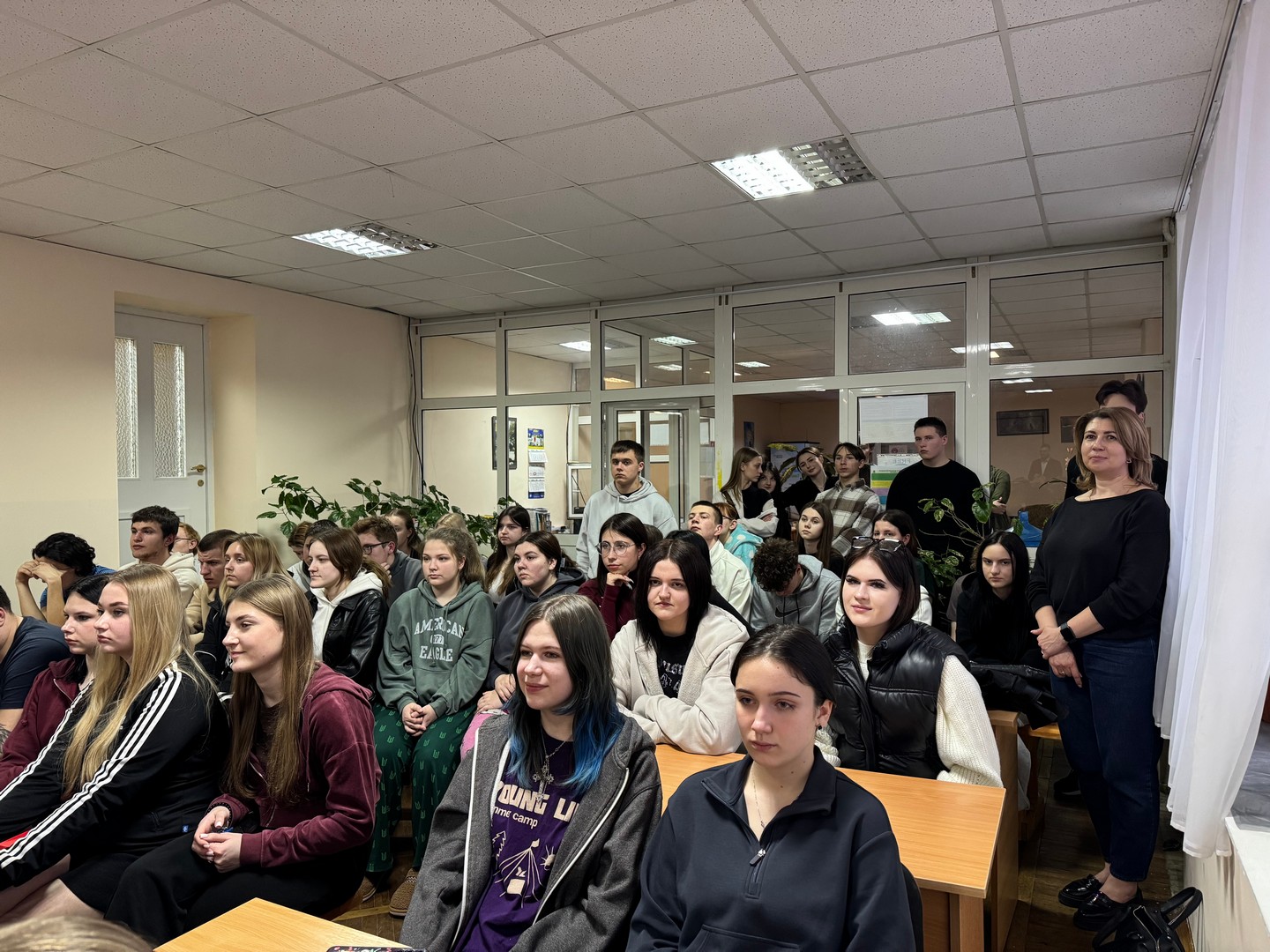 Особливу увагу приділили безпеці в умовах воєнного стану. Обговорювалися питання дій під час повітряної тривоги, а також загальна поведінка під час надзвичайних ситуацій. Сергій Миколайович підкреслив, що сигнал тривоги не можна ігнорувати, і кожен студент має негайно спускатися в укриття. «Найцінніше — це життя і здоров’я. Жодні справи не можуть бути важливішими за вашу безпеку», — наголосив він. Також студентів застерегли від можливих провокацій, зокрема в месенджерах і соціальних мережах, закликавши не реагувати на підозрілі повідомлення та пропозиції, які можуть нести загрозу або вводити в оману.