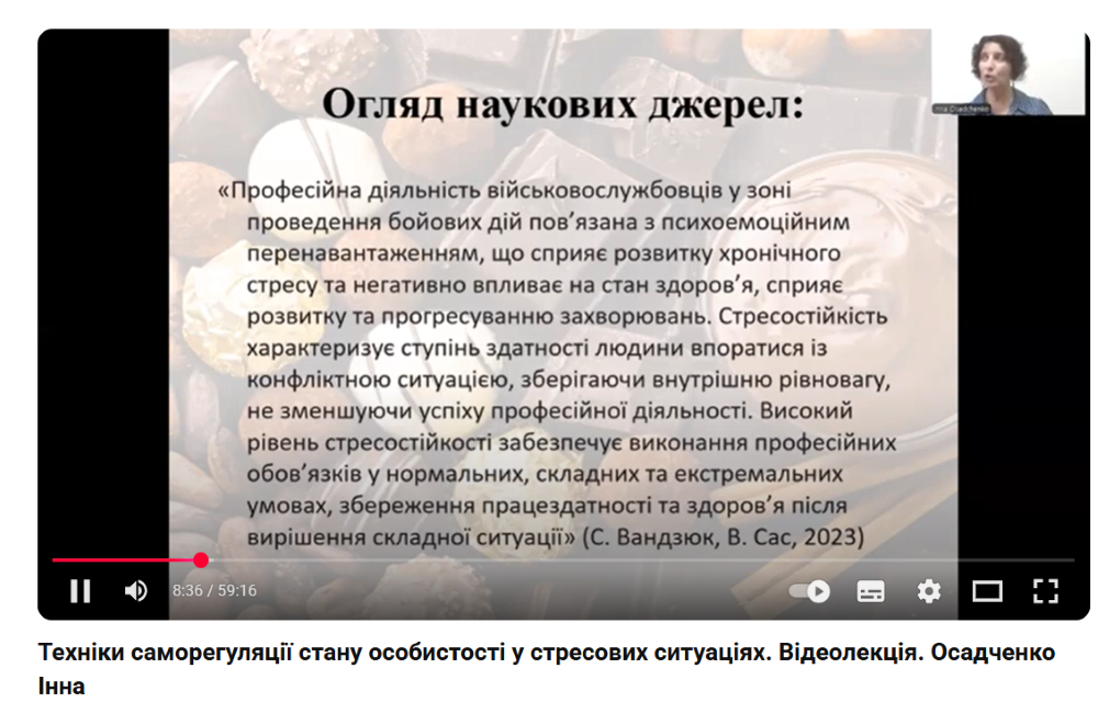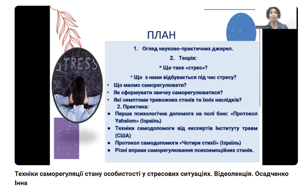 «Техніки саморегуляції психоемоційного стану особистості у стресових ситуаціях»: відкрита онлайн-лекція професора Осадченко І. І.
