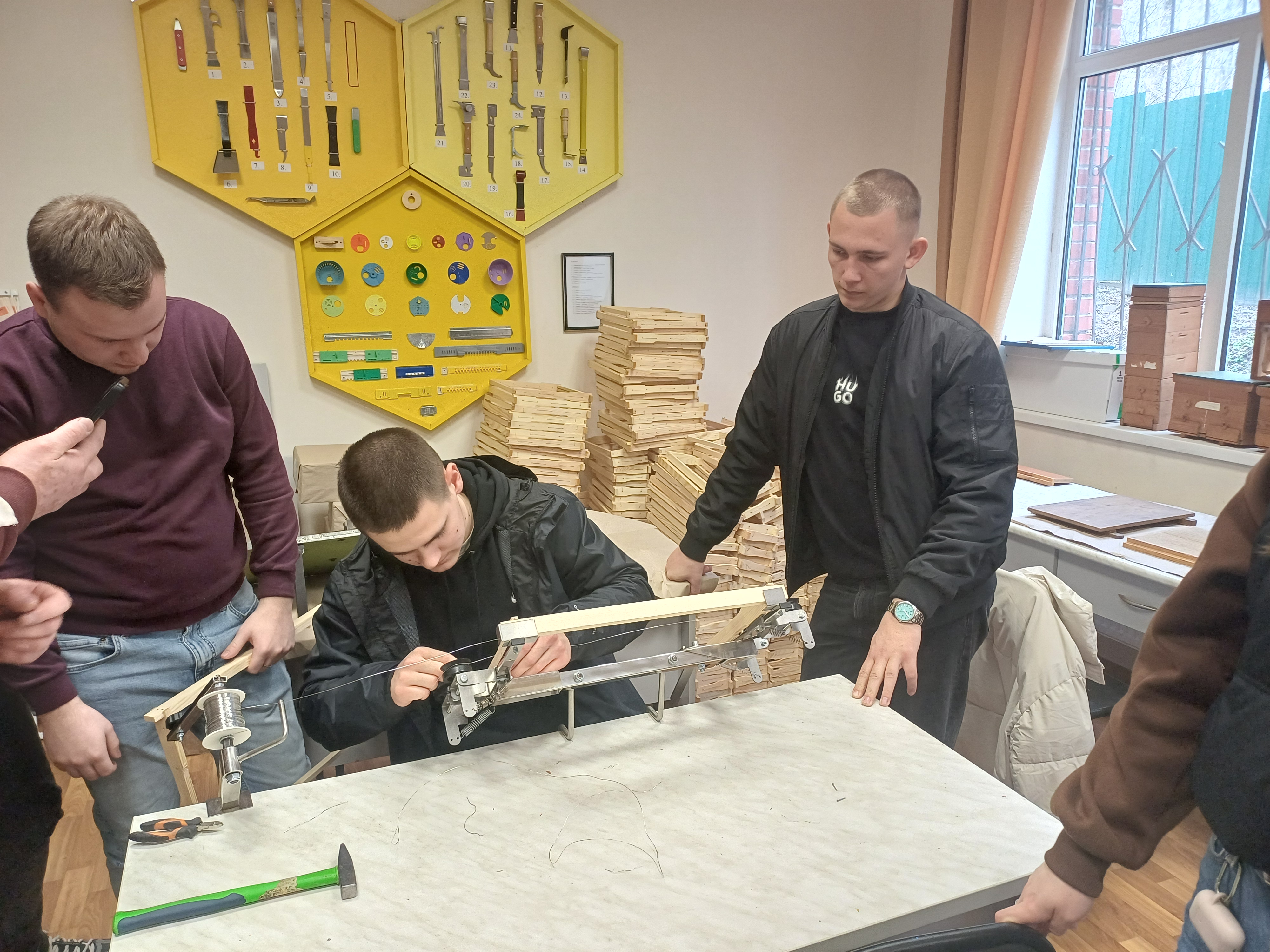 Заняття розпочалося з жвавої дискусії. Студенти, які до цього бачили викладачів лише у віконцях Zoom, нарешті отримали можливість поставити запитання «тут і зараз». Головну увагу приділили підготовці до весняно-літнього сезону - критичного періоду для кожного пасічника.