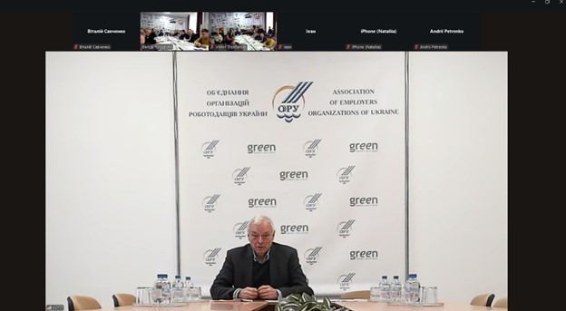 Перший віце-президент Об’єднання організацій роботодавців України Сергій ПРОХОРОВ поінформував присутніх про проєктну діяльність професійних асоціацій для посилення кадрового потенціалу малого бізнесу у відповідності до концепції «зеленого» переходу.