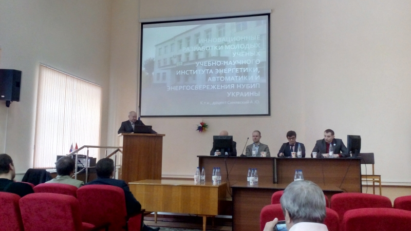 На пленарному засіданні доц. О.Ю. Синявський зробив доповідь на тему: «Інноваційні розробки молодих вчених ННІ енергетики і автоматики НУБіП України».