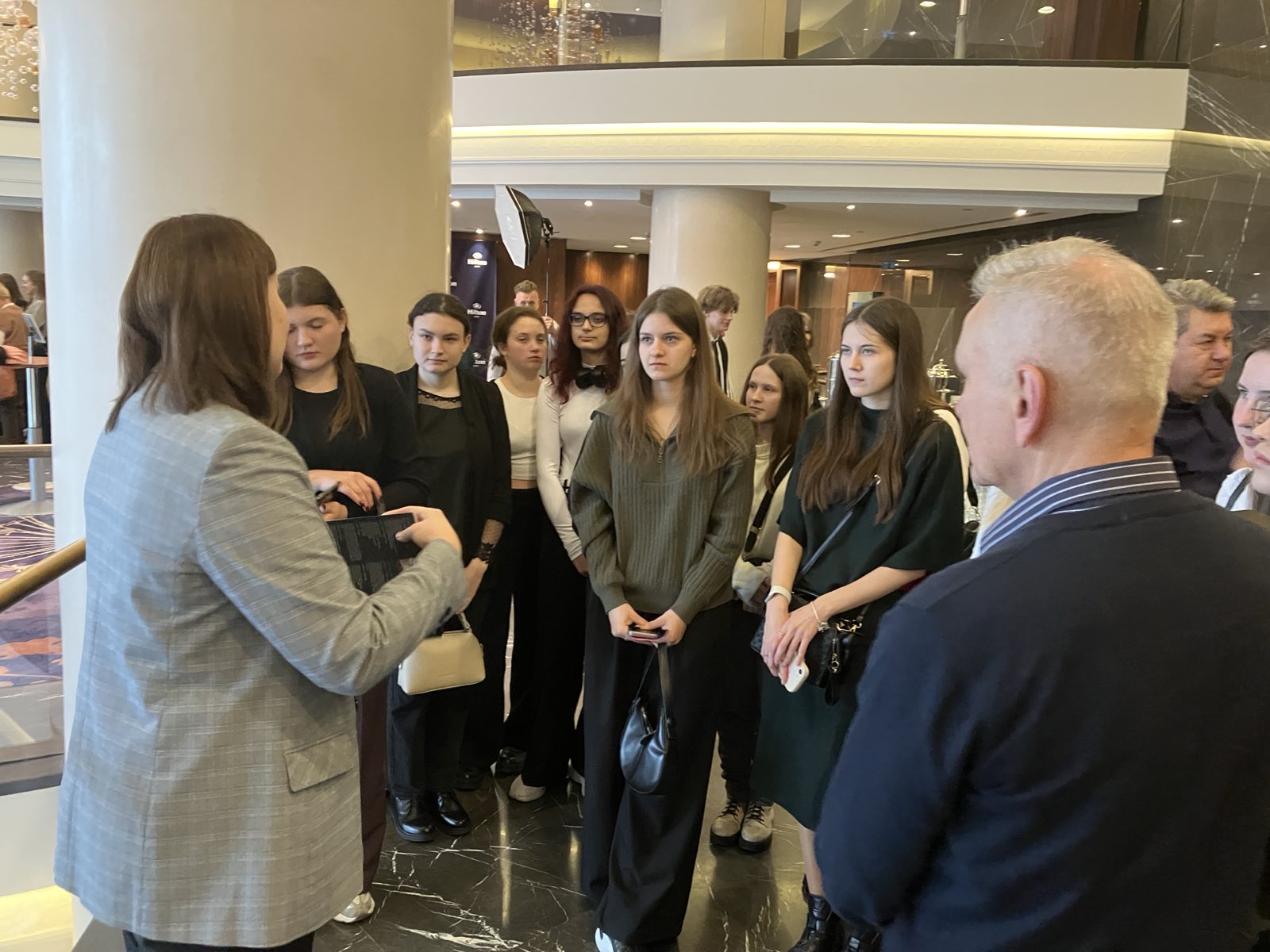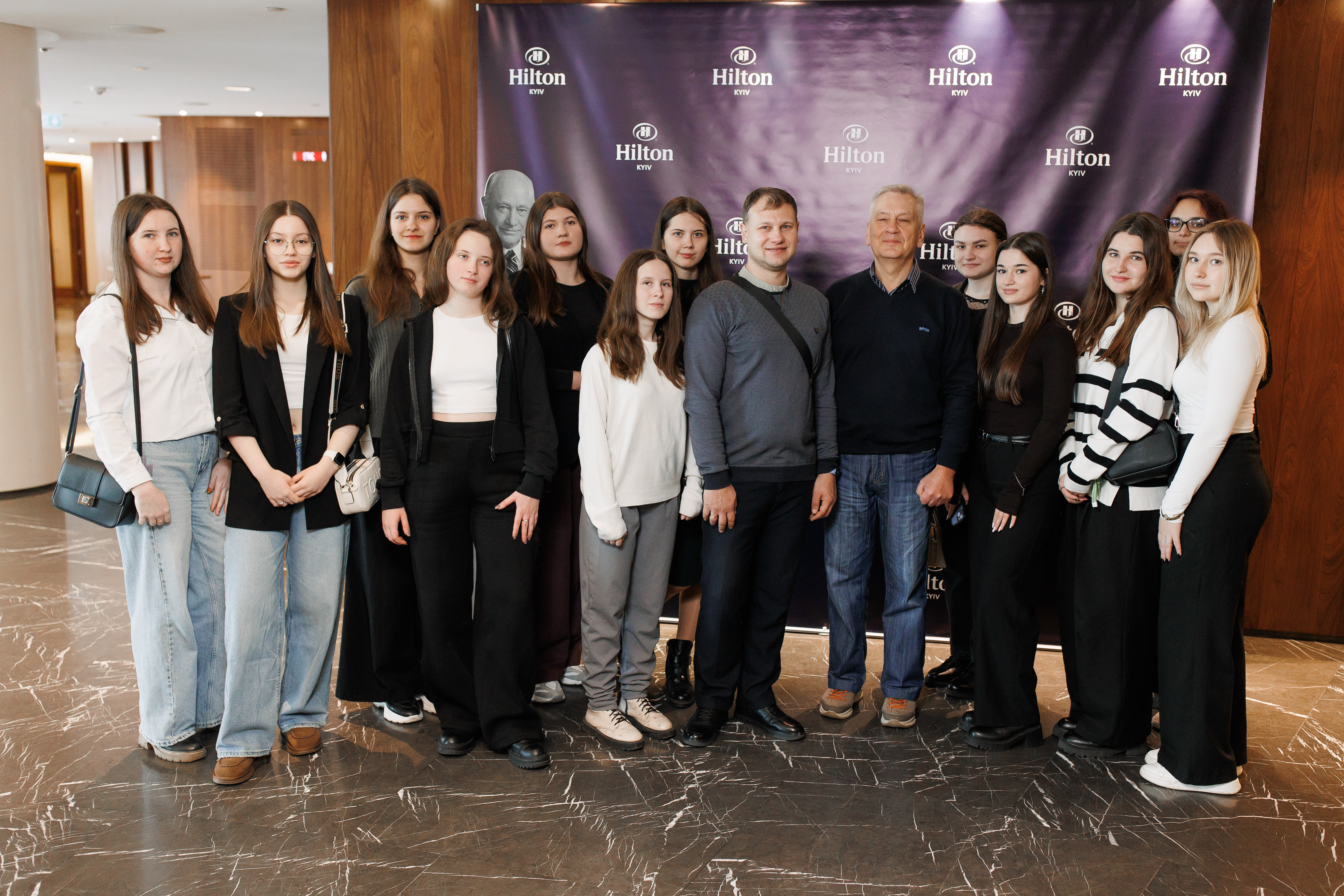 У рамках виїзних занять із освітніх компонент «Ресторанна справа» та «Стартап-менеджмент» здобувачі вищої освіти спеціальностей «Готельно-ресторанна справа та кейтеринг», «Туризм та рекреація» брали участь у професійно-орієнтованій екскурсії до п’ятизіркового готелю Hilton Kyiv, який входить до однієї з найбільших міжнародних готельних мереж світу. Захід був організований у форматі Hospitality Horizons: Career Discovery Day, об’єднав лекційну, практичну та оглядову частини.