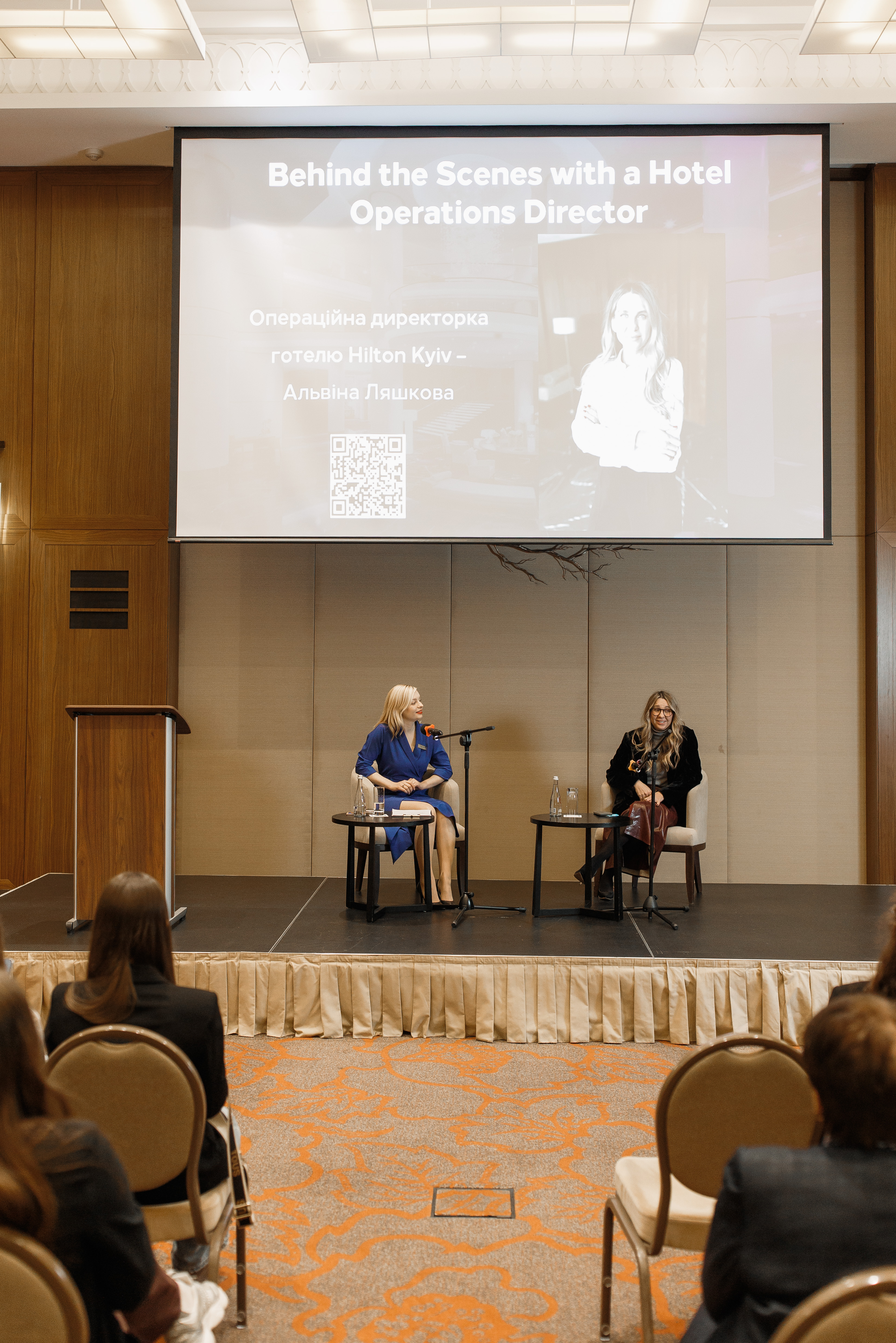Далі слово взяла Аліна ЛУК’ЯНОВА операційна директорка готелю, яка презентувала тему «Behind the Scenes with a Hotel Operations Director». Спікерка розкрила специфіку щоденної координації всіх служб готелю, підготовку персоналу та дотримання міжнародних стандартів сервісу, що є фундаментом успішної роботи Hilton. Здобувачі освіти отримали можливість побачити, як світові стандарти операційної діяльності трансформуються у конкурентні переваги та стають основою успішних готельних стартапів у преміальному сегменті.