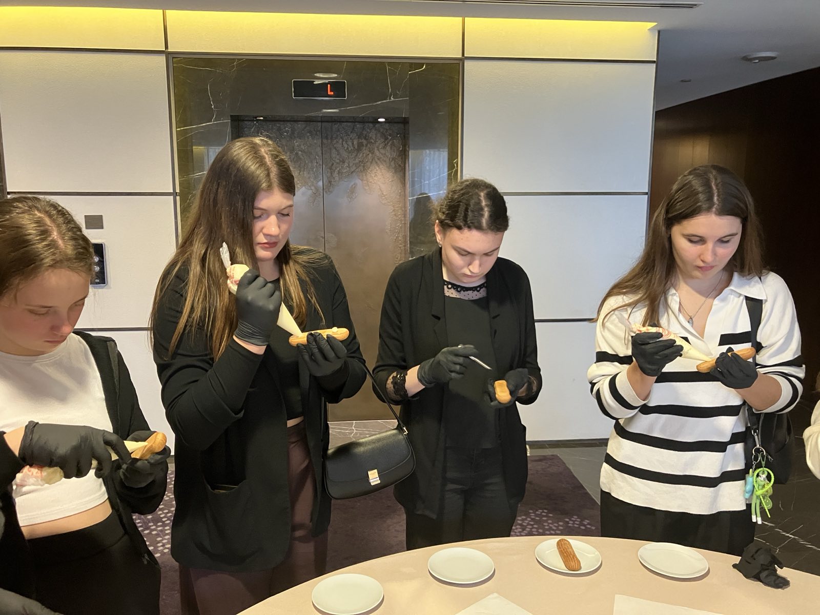 Завершальним етапом стала екскурсія службовими приміщеннями готелю. Студенти оглянули кухонні виробничі цехи, завантажувальну зону, конференц-простори, ресторан, технічні служби та інфраструктуру бек-офісу. Під час огляду майбутні фахівці дізналися про логістику, технологічні процеси та внутрішню організацію роботи п’ятизіркового готелю світового рівня. Не менш захопливим для всіх учасників став майстер-клас із приготування еклерів, який провели кондитери Hilton Kyiv. Студенти змогли побачити професійний процес створення заварного тіста, ознайомитися з технологією заповнення та глазурування, а також дізнатись секрети ідеальної текстури та смаку від експертів. Під час майстер-класу учасники не лише спостерігали, а й мали можливість долучитися до процесу, що додало події практичної цінності й теплих емоцій.
