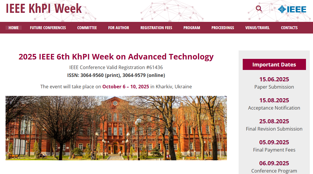 З 06 по 10 жовтня 2025 року на базі Харківського політехнічного університету відбулася 6-та Міжнародна конференція «2025 IEEE 6th KhPI Week on Advanced Technology», організатором якої є міжнародна організація IEEE — «The world’s largest technical professional organization dedicated to advancing technology for the benefit of humanity».