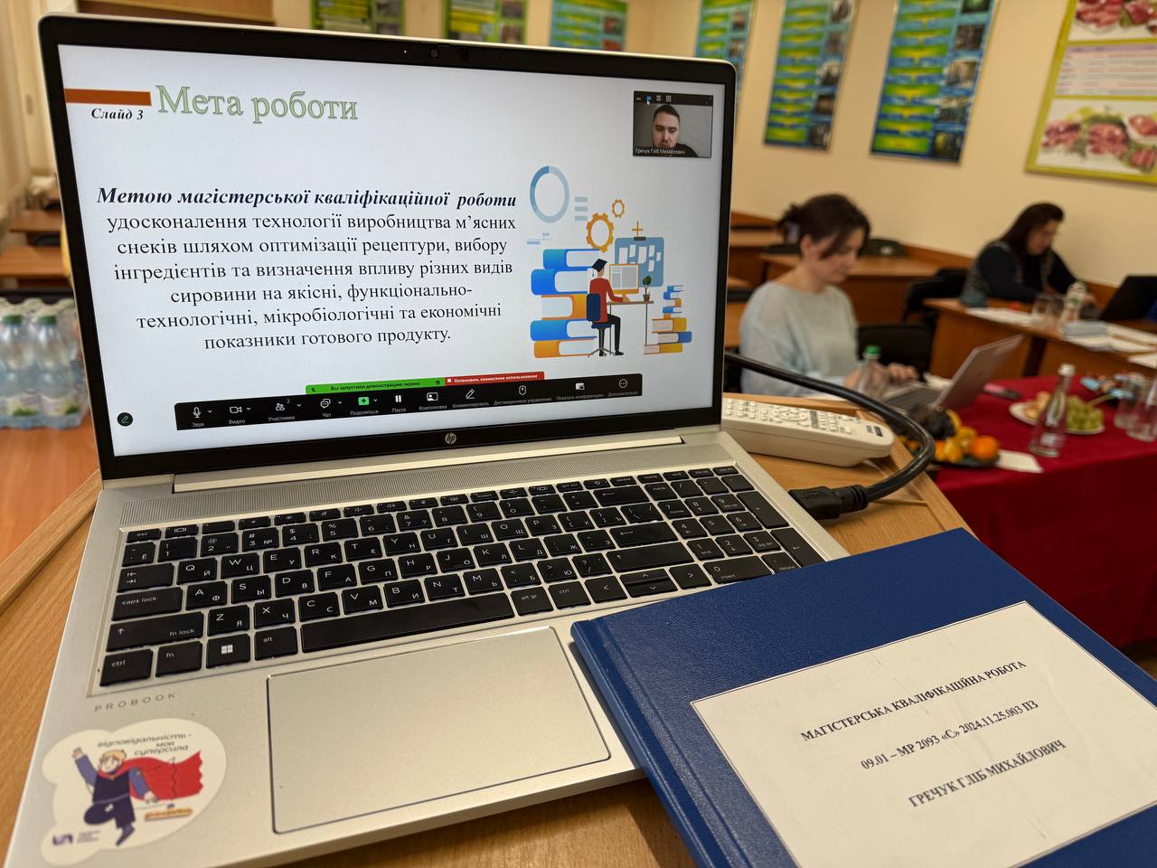 Для проведення атестації магістрів ОП «Технології зберігання, консервування та переробки м’яса» була створена екзаменаційна комісія у складі: голова - доктор технічних наук, професор Світлана ДАНИЛЕНКО; члени комісії – завідувач кафедри технології м’ясних, рибних та морепродуктів, кандидат технічних наук, доцент, Олександр САВЧЕНКО; кандидат технічних наук, доцент, доцент кафедри технології м’ясних, рибних та морепродуктів Оксана ШТОНДА; кандидат технічних наук, доцент кафедри технології м’ясних, рибних та морепродуктів Валентина ІСРАЕЛЯН;. Секретар комісії - завідувач лабораторії кафедри технології м’ясних, рибних та морепродуктів Ірина МОМОТ.