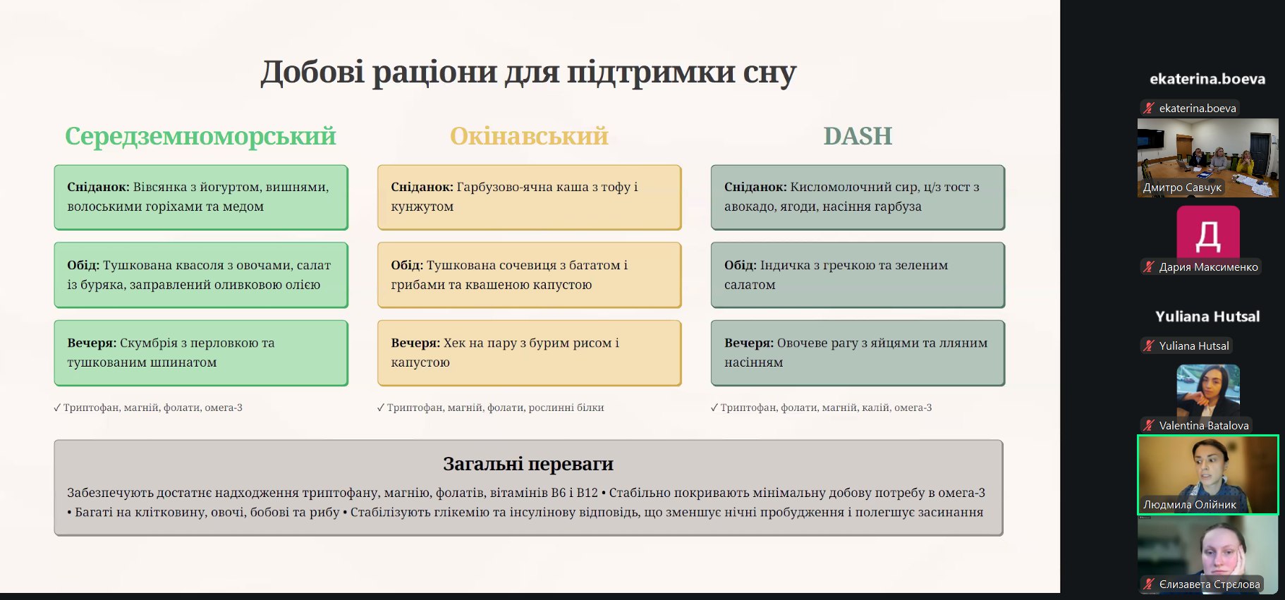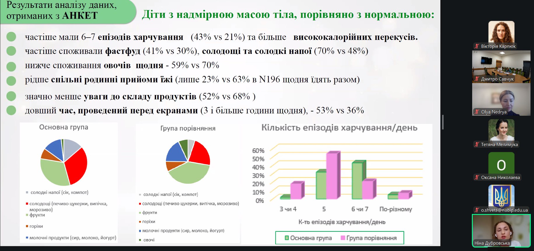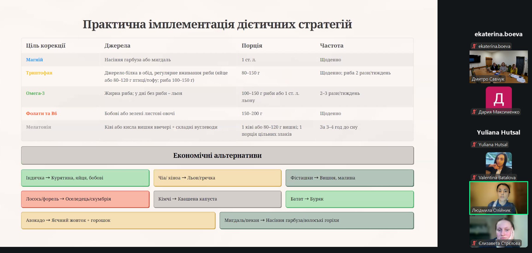 Тематика підготовлених до захисту магістерських робіт вражала своєю різноманітністю та глибиною. Одним із напрямів наукових пошуків було вивчення та наукове огрунтування впливу нутрієнтів на перебіг певних станів і захворювань у різних когорт населення. Цікавими напрацюваннями з цього напряму поділились: