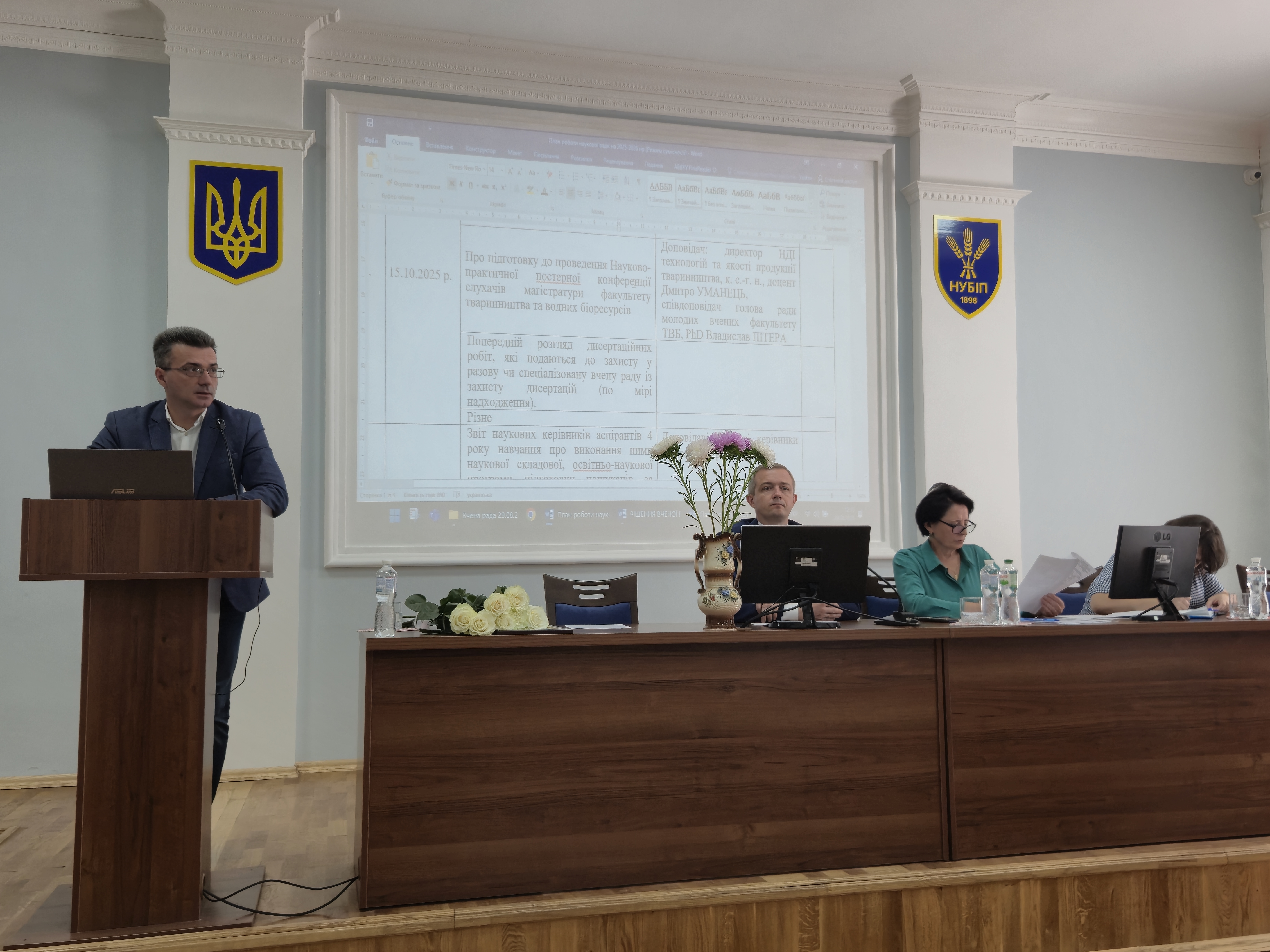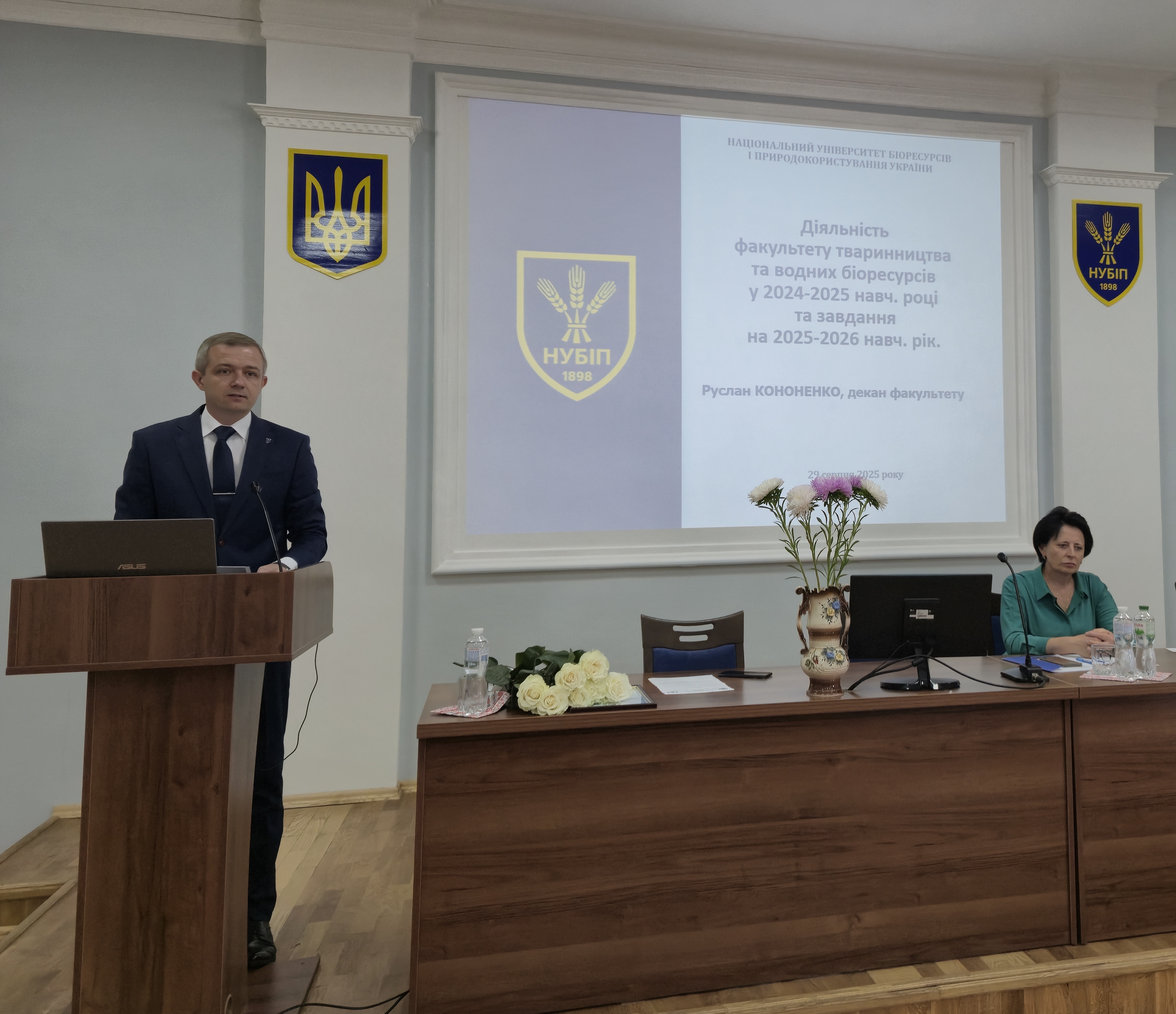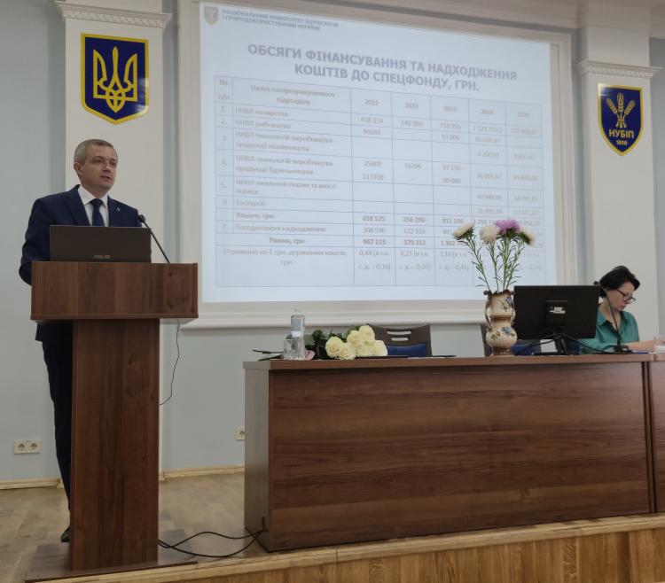 З доповіддю про наукову діяльність факультету та план роботи на 2025–2026 навчальний рік виступив директор НДІ технологій та якості продукції тваринництва Дмитро Уманець.