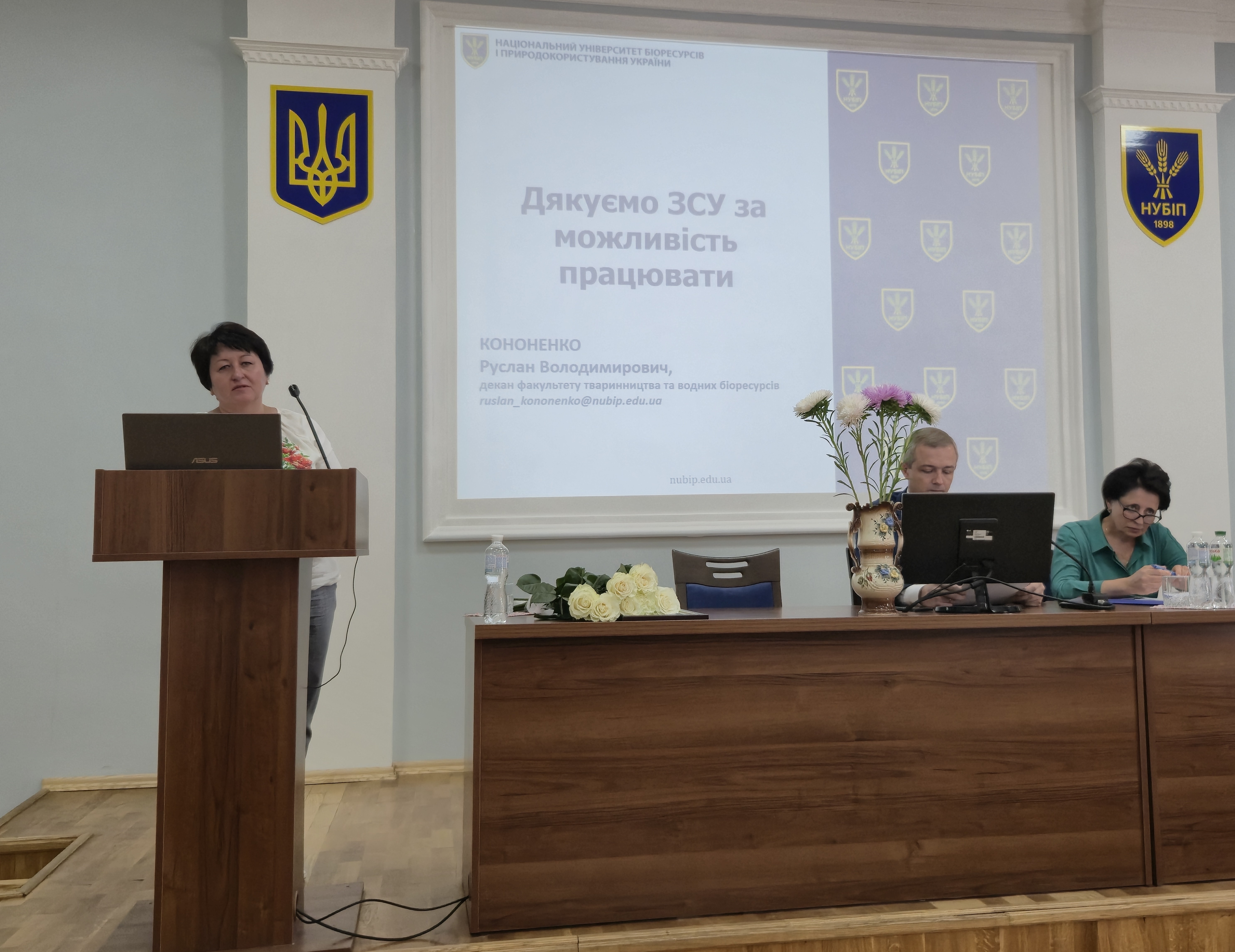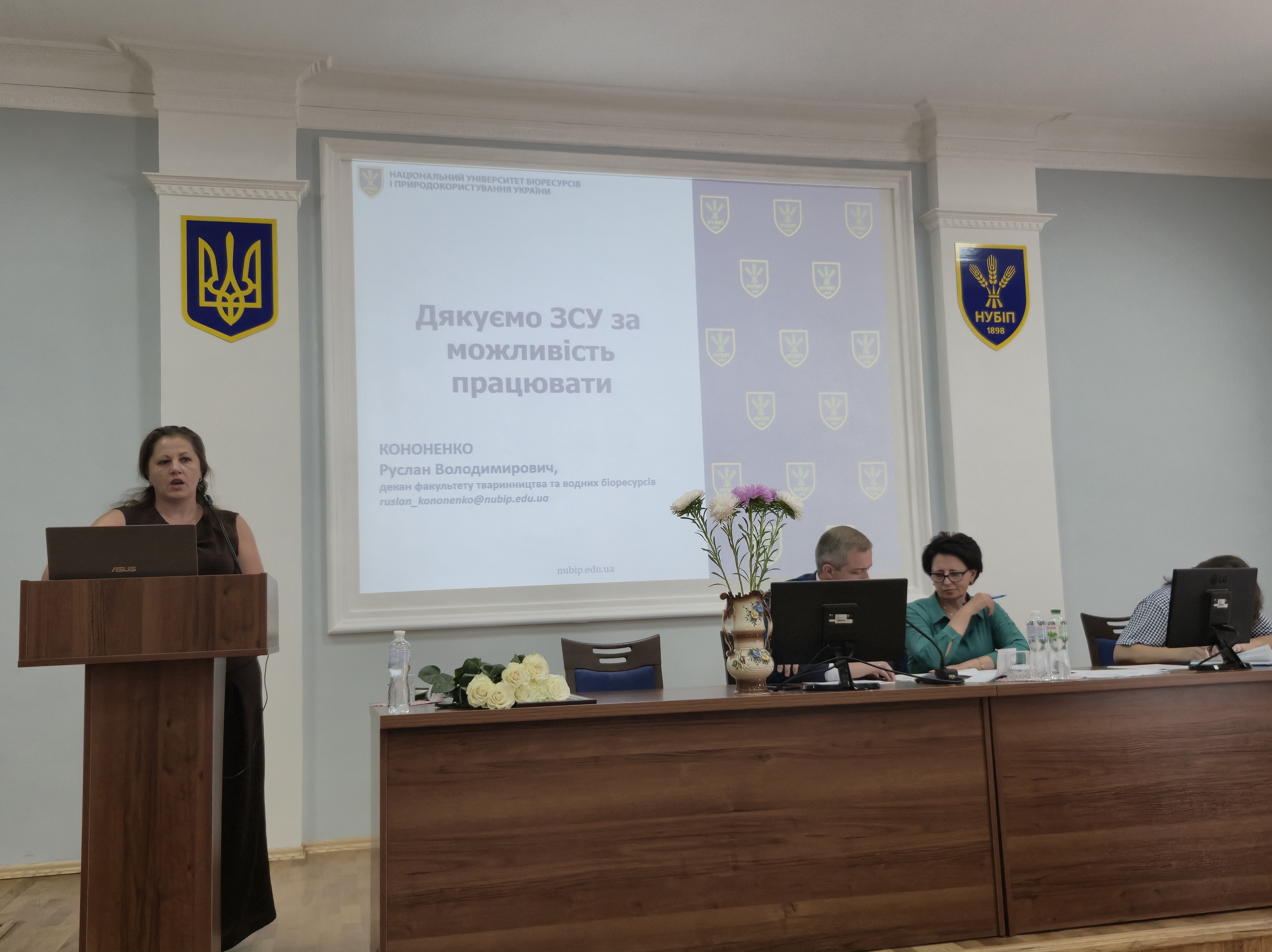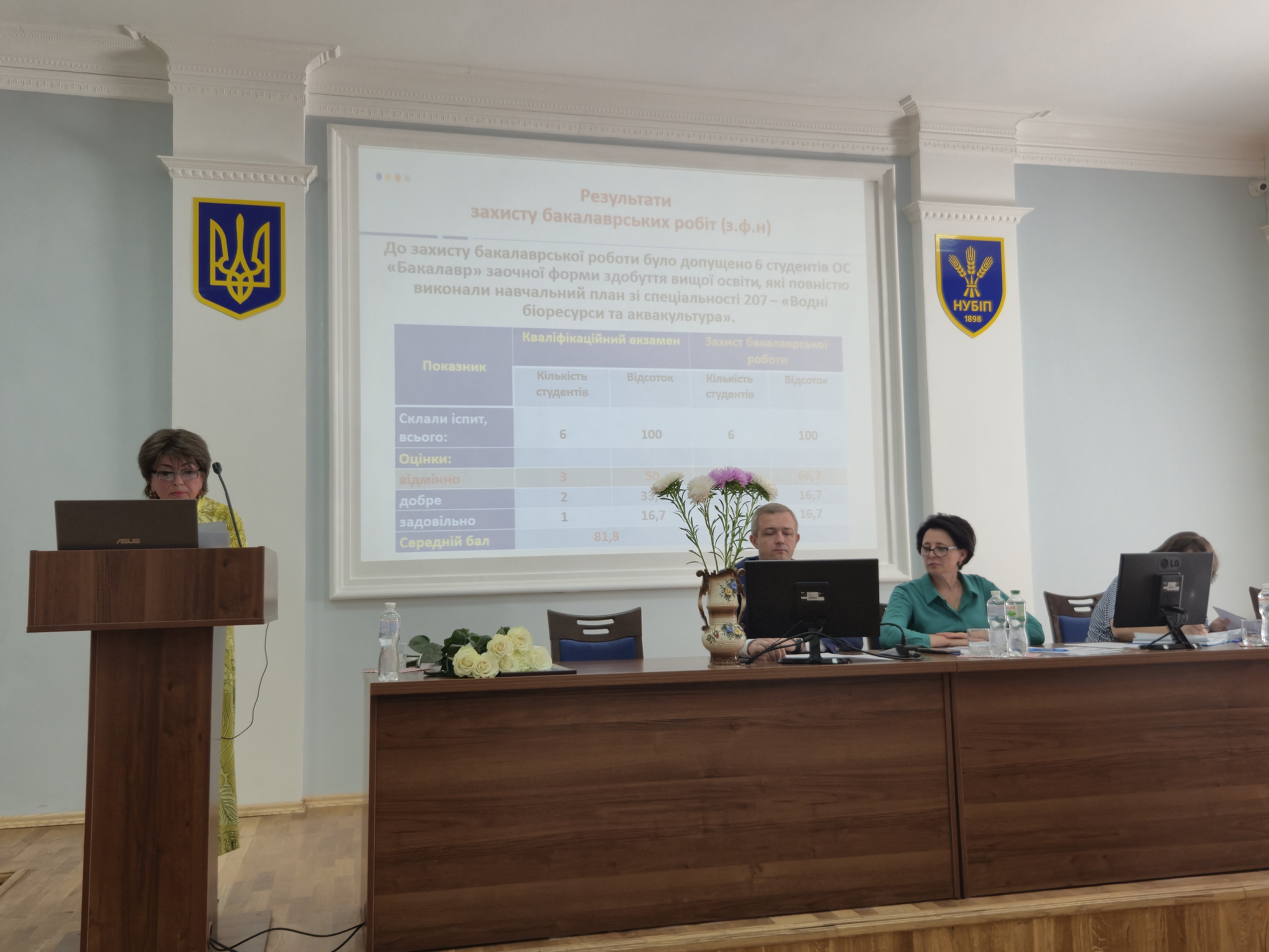 Попри непросту ситуацію в країні засідання розпочалося з приємної події – вручення співробітникам факультету Почесних грамот НУБіП України за вагомі заслуги. Відзнаки отримали: завідувач кафедри аквакультури Віталій Бех, доцент кафедри аквакультури Вадим Марценюк, завідувачка лабораторії біології тварин Ольга Іванова та старший лаборант кафедри технологій у тваринництві Валентина Мамчур.