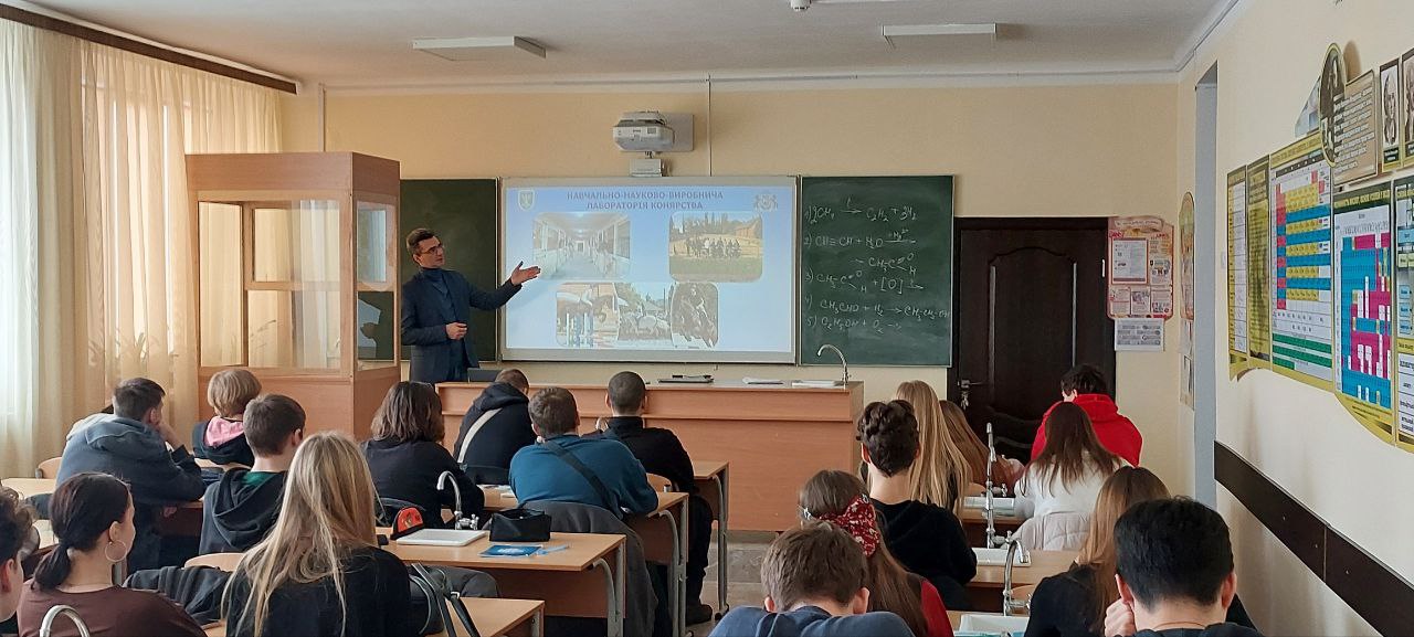 З метою поширення серед випускників шкіл інформації про Національний університет біоресурсів і природокористування України доцент кафедри годівлі тварин та технології кормів ім. П.Д. Пшеничного факультету тваринництва та водних біоресурсів Дмитро УМАНЕЦЬ відвідав Опорний заклад освіти академічний ліцей № 1 ім. А.С. Малишка, Обухівської міської ради Київської області. Гостинно зустріла і організувала ефективне проведення профорієнтаційної роботи заступник директора з навчально-виховної роботи Ольга ЩЕРБАНЬ.
