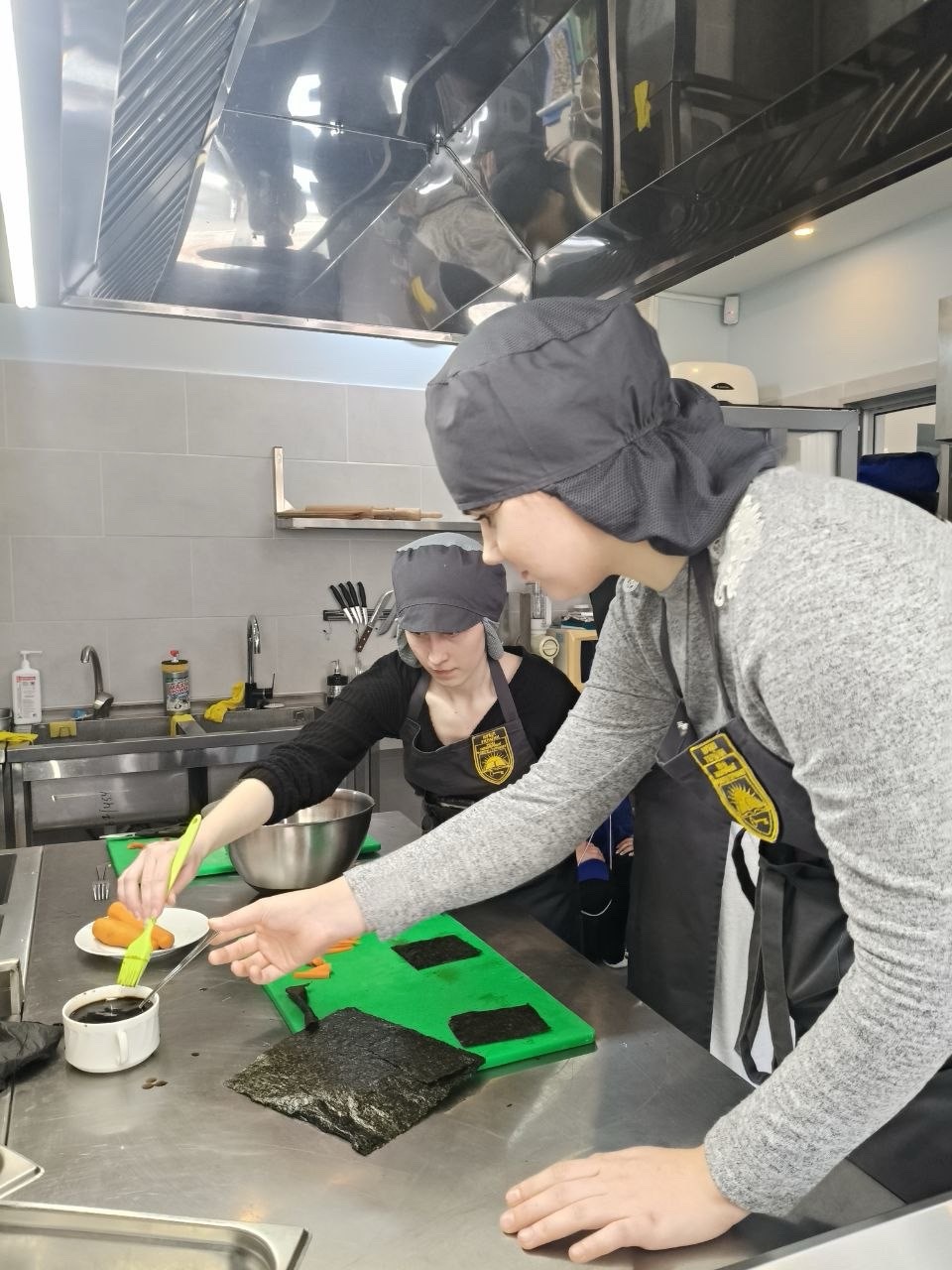 Завершальним етапом майстер-класу стало приготування рибного рулету за технологією су-від. Здобувачі ознайомилися з особливостями низькотемпературної обробки продуктів, її перевагами та впливом на якість готової страви. Спікер продемонстрував ключові етапи приготування та поділився професійними секретами, що використовуються у ресторанній практиці. Учасники змогли оцінити результат, звернувши увагу на текстуру, соковитість і презентацію страви.