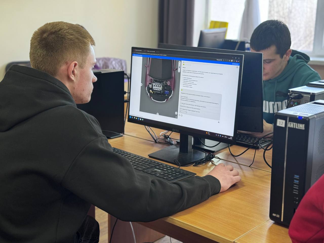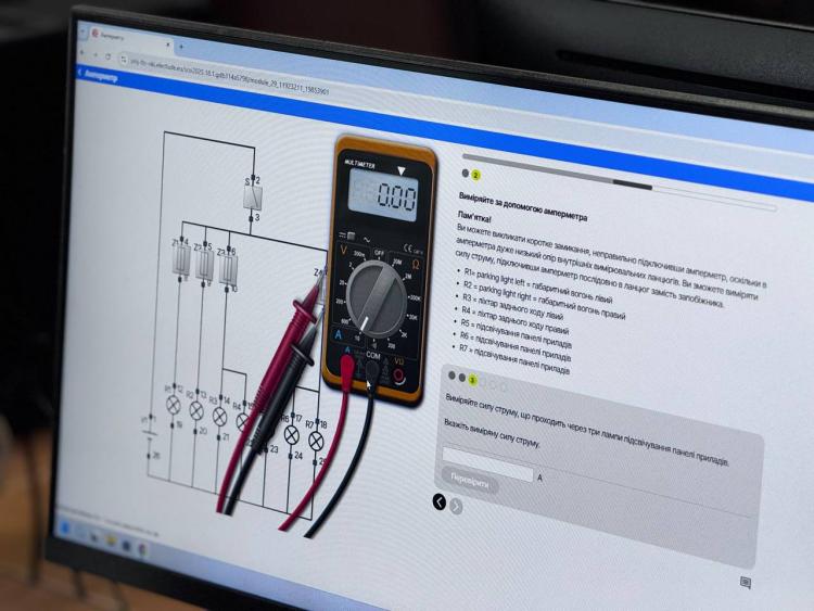 Одним із базових інструментів підготовки є інтерактивна платформа Electude, яка дозволяє моделювати складні технічні процеси та формувати системне розуміння роботи автомобіля. Студенти працюють із цифровими моделями електричних кіл, аналізують сигнали, виконують діагностичні процедури та відпрацьовують алгоритми пошуку несправностей у сценаріях, що максимально наближені до реальних виробничих задач.