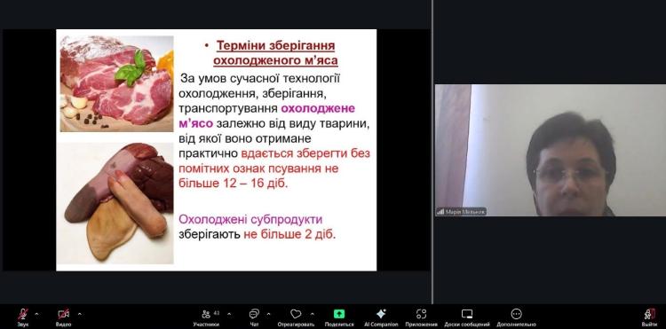 9 березня 2026 року відбулася відкрита online-лекція кандидата ветеринарних наук, доцента кафедри ветеринарної епідеміології та охорони здоров’я тварин Марії Василівни Мельник з дисципліни “Мікробіологія м’яса та м’ясних продуктів на тему «Мікробіологія охолодженого та замороженого м’яса» для здобувачів вищої освіти 4 курсу ОС «Бакалавр» спеціальності «Харчові технології» факультету харчових наук, нутріціології та управління якістю.