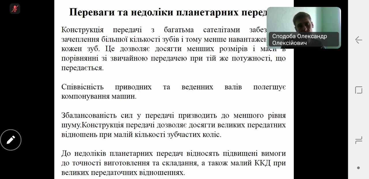 09 березня 2026 року відбулась відкрита лекція доктора філософії PhD з галузі знань механічна інженерія, старшого викладача кафедри конструювання машин і обладнання СПОДОБИ Олександра Олексійовича з дисципліни «Теоретична механіка» на тему «Приводні механізми маніпуляційних систем. Планетарні механізми», яка була прочитана для здобувачам вищої освіти (студентів) четвертого курсу, які навчаються за освітньо-професійною програмою «Галузеве машинобудування» ОС «Бакалавр» за освітньою компонентою «Розрахунок і конструювання роботів і маніпуляторів» факультету конструювання та дизайну.