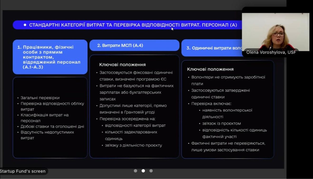 Щиро дякуємо Українському фонду стартапів та Олені ВОРОШИЛОВІЙ за змістовну, структуровану й надзвичайно практичну розмову, що допомагає українським організаціям та науковцям впевнено почуватися в процесі реалізації європейських грантових проєктів і проходити аудит із розумінням та професійною готовністю.
