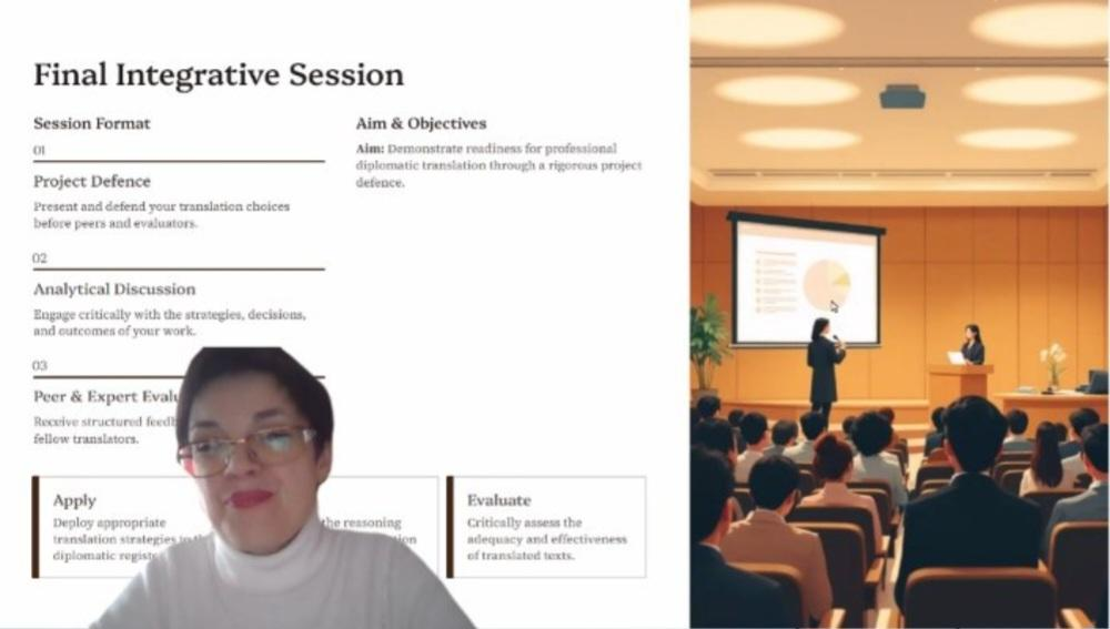 Заняття мало інтегративний характер і було спрямоване на узагальнення та демонстрацію професійних перекладацьких компетентностей у сфері дипломатичного дискурсу напередодні підсумкового контролю.