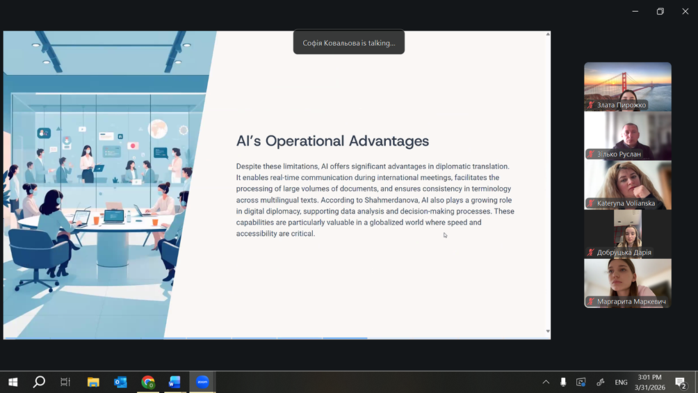 Відкрите заняття доц. Чайки О. І. у форматі захисту проєктів: дипломатичний переклад у професійному контексті