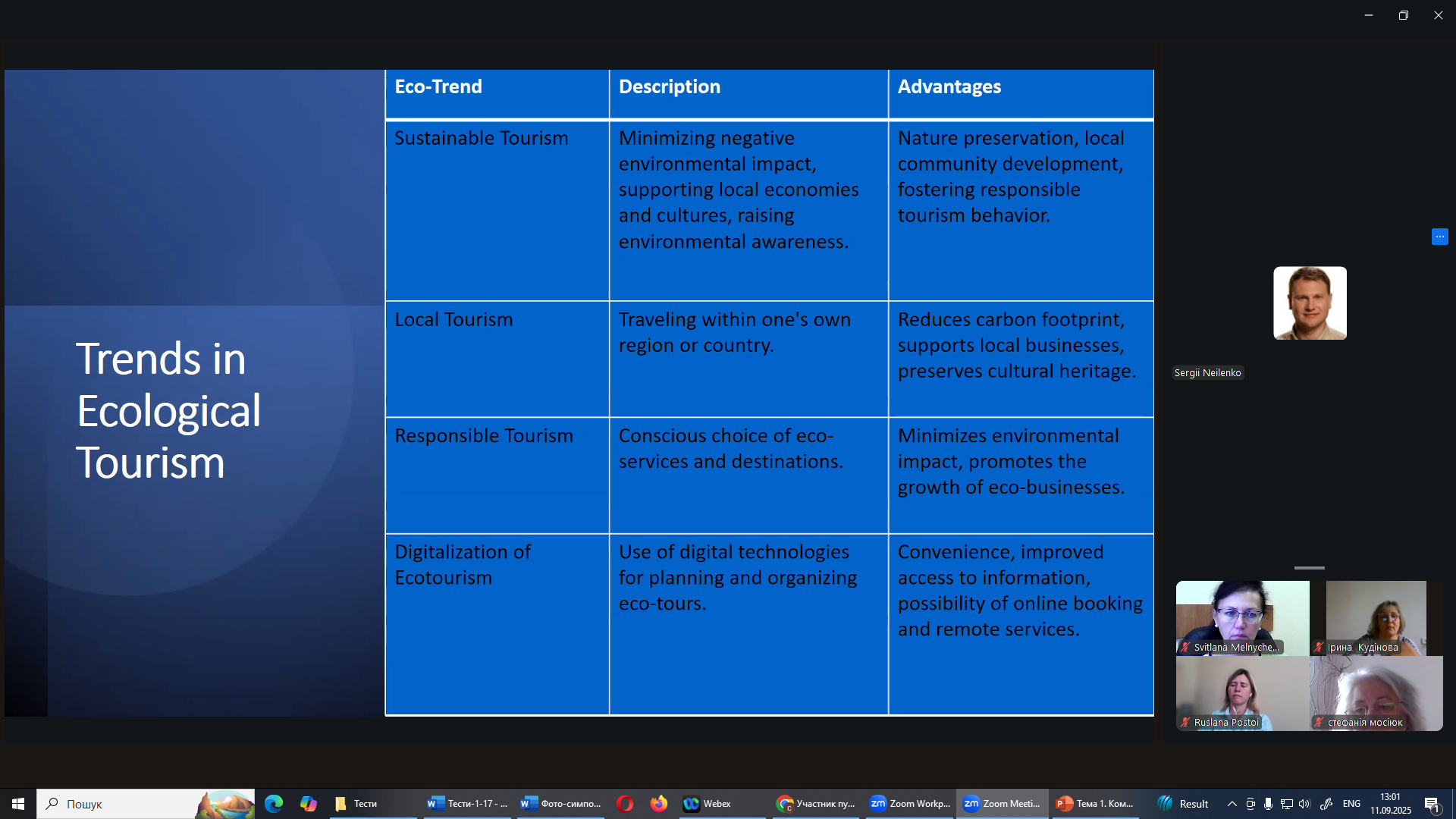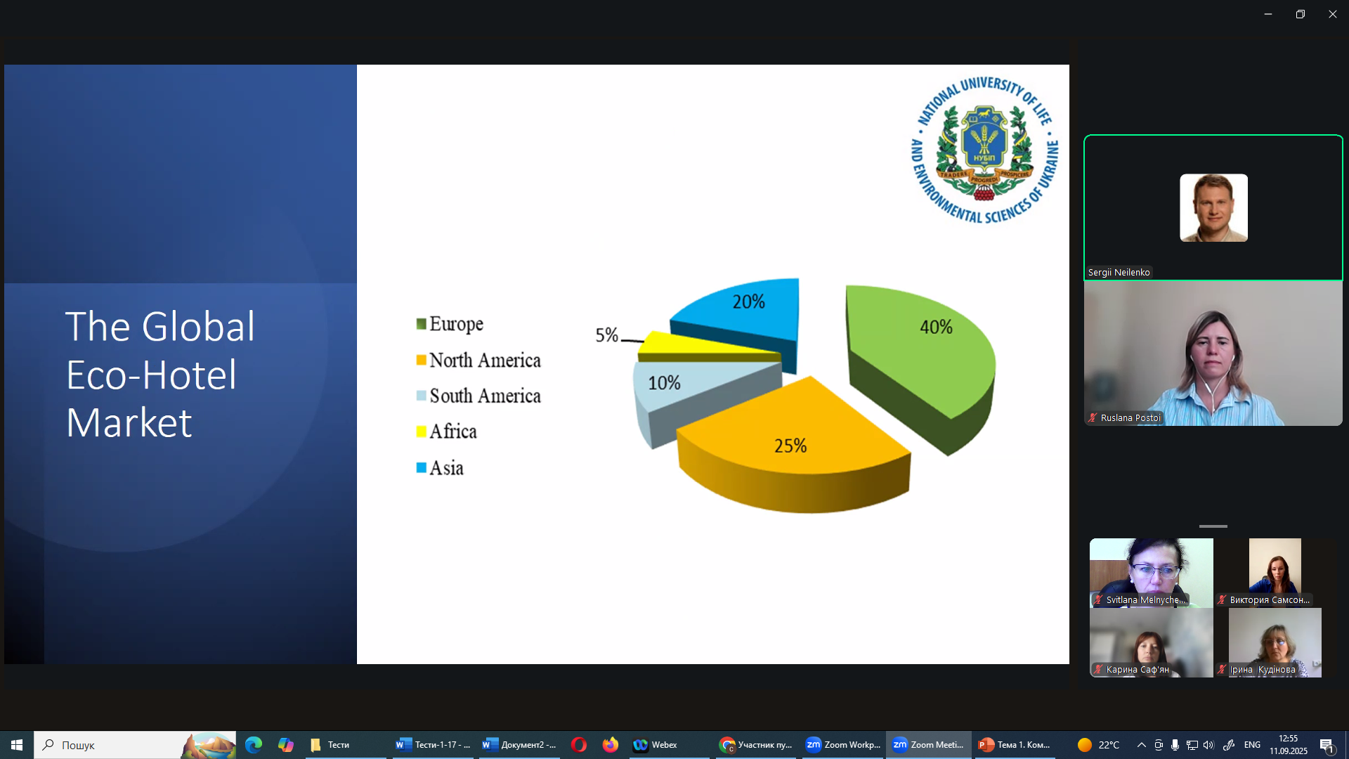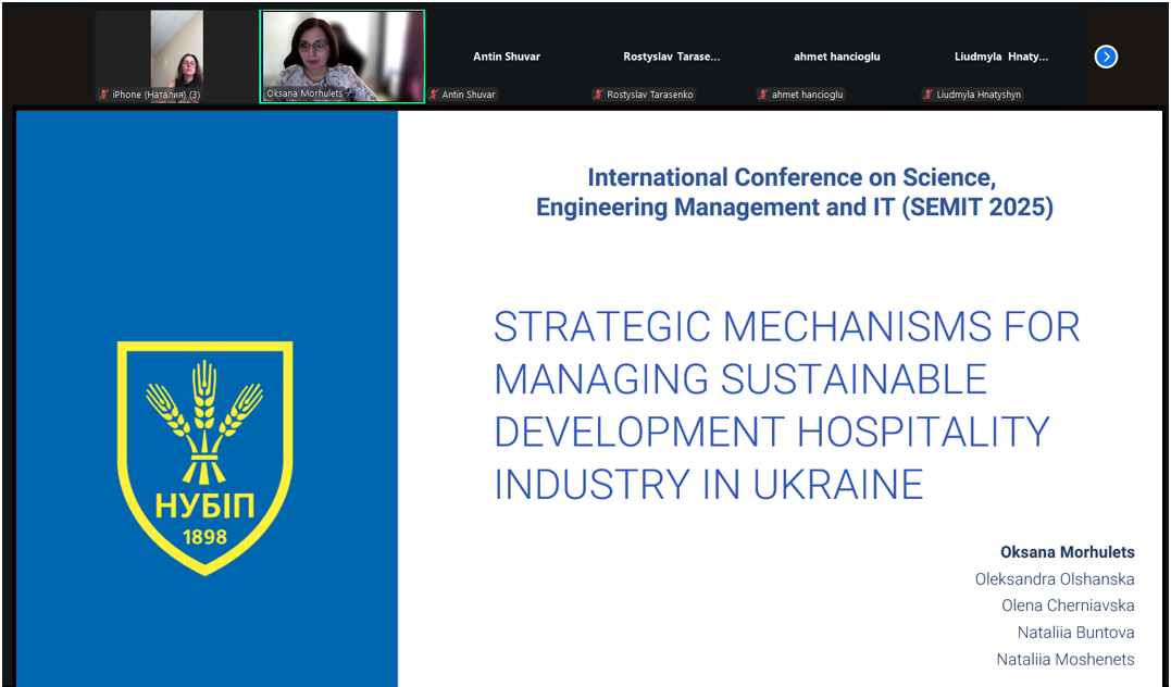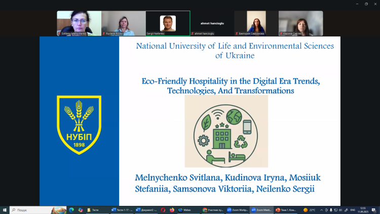 Від авторського колективу, до складу якого увійшли Світлана МЕЛЬНИЧЕНКО, Ірина КУДІНОВА, Стефанія МОСІЮК, Вікторія САМСОНОВА, з доповіддю “ECO-FRIENDLY HOSPITALITY IN THE DIGITAL ERA: TRENDS, TECHNOLOGIES, AND TRANSFORMATIONS” виступив доцент кафедри Сергій НЕІЛЕНКО. У доповіді розкрито сучасні тенденції впровадження екологічно дружніх практик у сфері гостинності, використання цифрових технологій для підвищення ефективності й сталого розвитку готельно-ресторанного бізнесу, а також основні трансформаційні процеси, що змінюють індустрію.