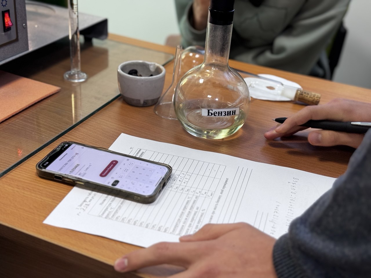 Після теоретичної частини учні приступили до практичної роботи. Під керівництвом завідувача вони провели наукові дослідження, визначаючи фракційний склад бензину та визначаючи ступінь його впливу на зниження шкідливих викидів та загальну екологічність експлуатації автомобіля. Цей інтерактивний формат дозволив учням не лише закріпити теоретичні знання, але й на власному досвіді відчути процес наукового аналізу та досліджень у галузі автомобільного транспорту.